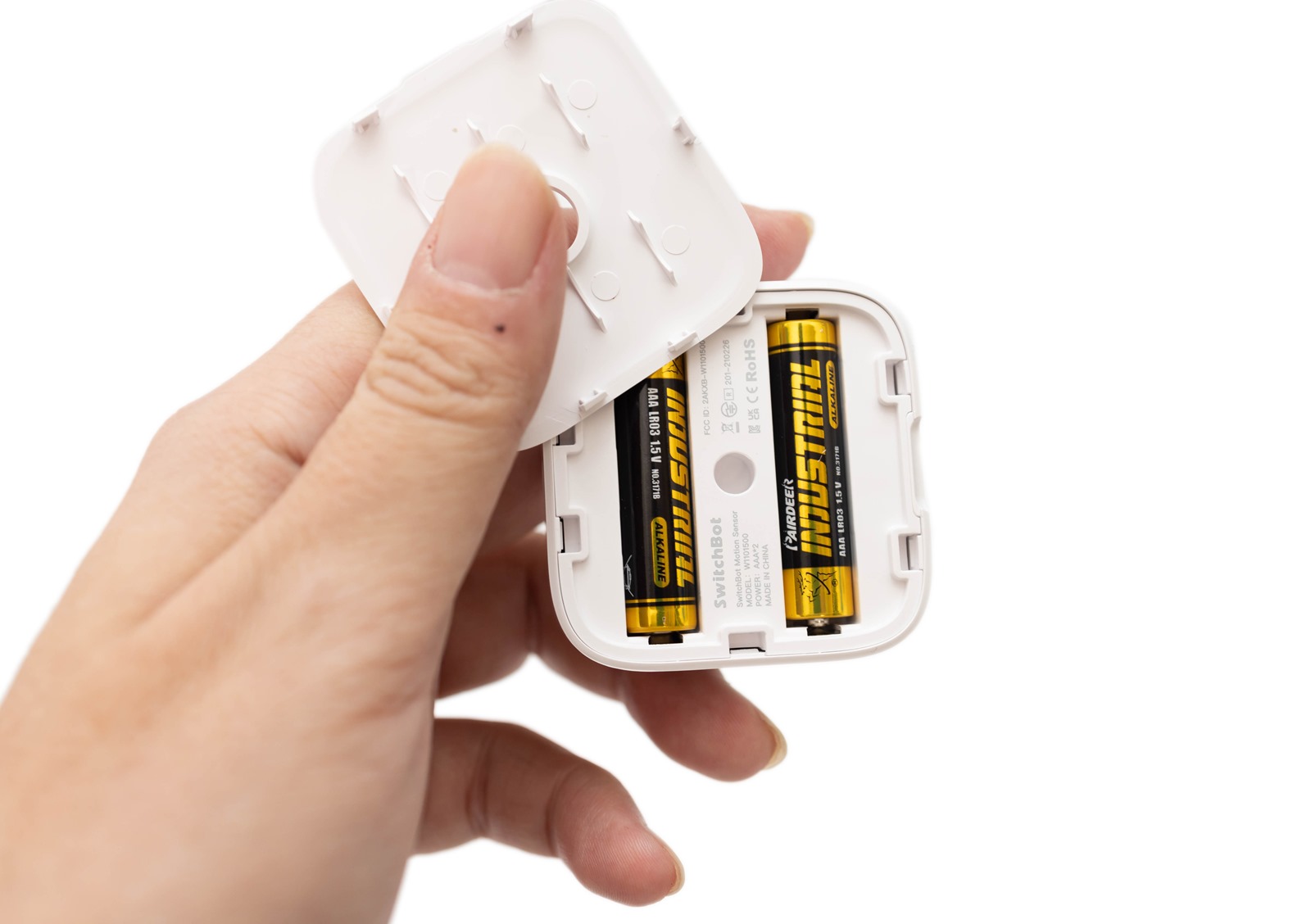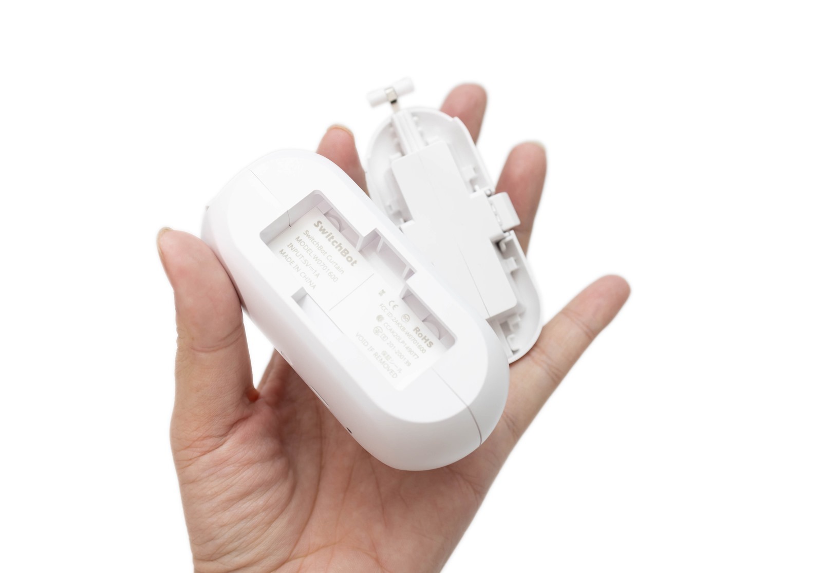SwitchBot Bot 非常小巧,採用藍牙連線與內建電池的設計只要簡單地貼在開關需要的地方就可以使用,小小一顆續航可高達兩年,也可自行替換電池(於各大 3C 賣場中皆可購得)。