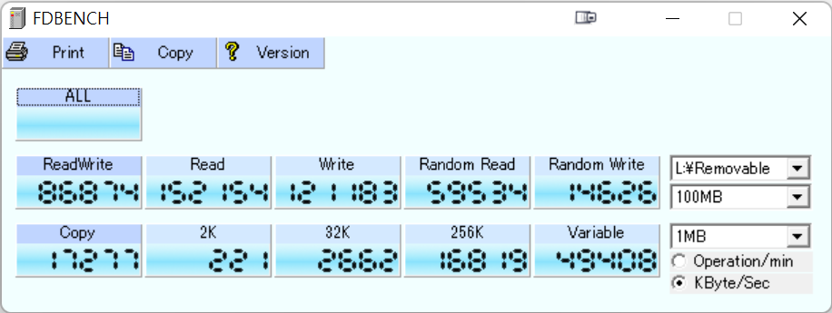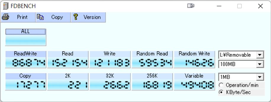 實際測試用電腦加上 Laxer 高速 讀卡機,測試結果可以實測達到 152MB/sec,寫入 121MB/sec 的成績。