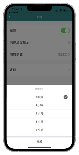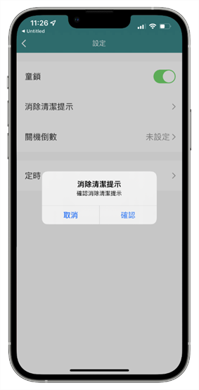 在定裡面也可以開啟兒童安全鎖,在阿輝家這個鎖就是用來防止貓咪站上機器表面長坐不動去影響機器風速的功能,完全有必要存在!另外也可以在這邊設定定時功能,及清潔機體後的消除清潔提示,app 也會重置