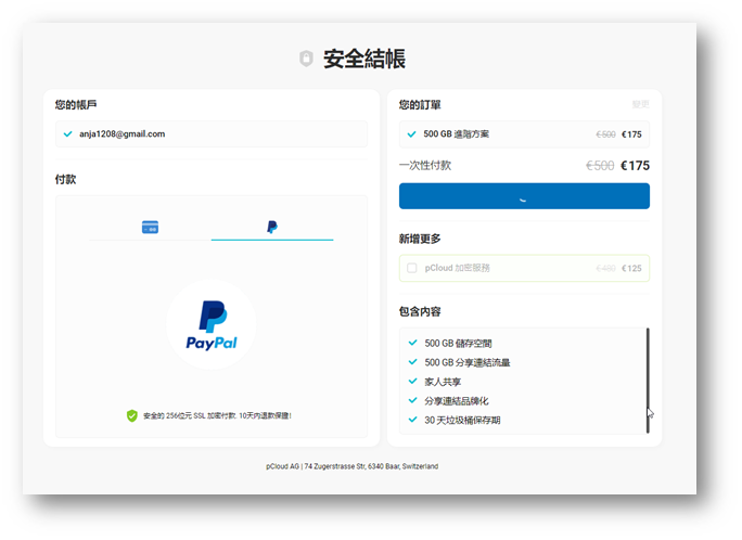 以阿輝長年使用雲端硬碟年年付費的方案來說,實際付出的金額早就已經超過這個費用,pCloud75% off 新春開工限時優惠終身方案可以說是非常划算,結帳方式也提供有信用卡和 Paypal 兩種選項,非常便利。簡單的來說 pCloud 若與 google drive 及 iCloud+這兩個雲端服務來說,相比之下的幾個比較大的優點如下