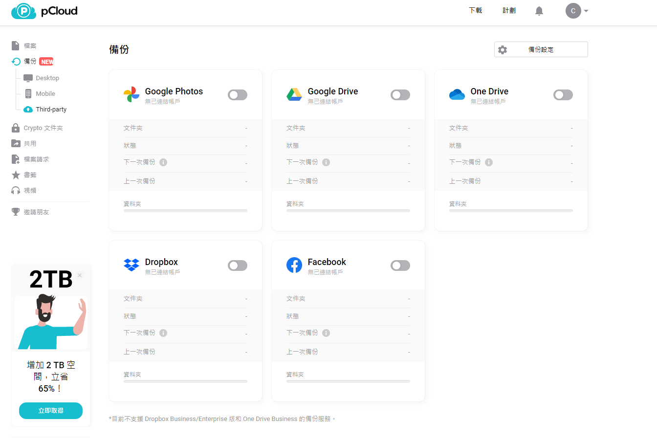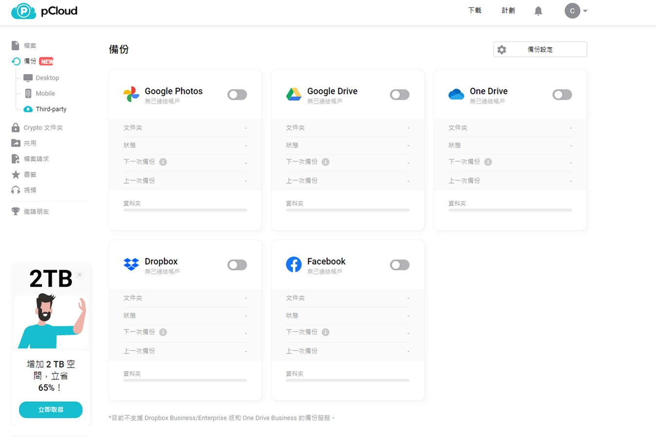 目前大家不管是企業或者是個人常使用的雲端服務硬碟大多是 Google Drive 、 One Drive 和 dropbox,目前這幾個雲端硬碟提供的都是以繳交月費使用的方式訂閱每月支付,每個不同的裝置都還使用不同的備份方案,甚至有些互不通用,檔案集中管理的方便性也較不足,使用 pCloud 則完全可以說是提供完整解決方案的一套雲端服務系統;使用雲端服務的功能已經是大多人的日常,每月訂閱支付下來的費用累積起來也是相當驚人,透過一次性付費購買終身方案會是一個非常划算實惠的使用方案。
