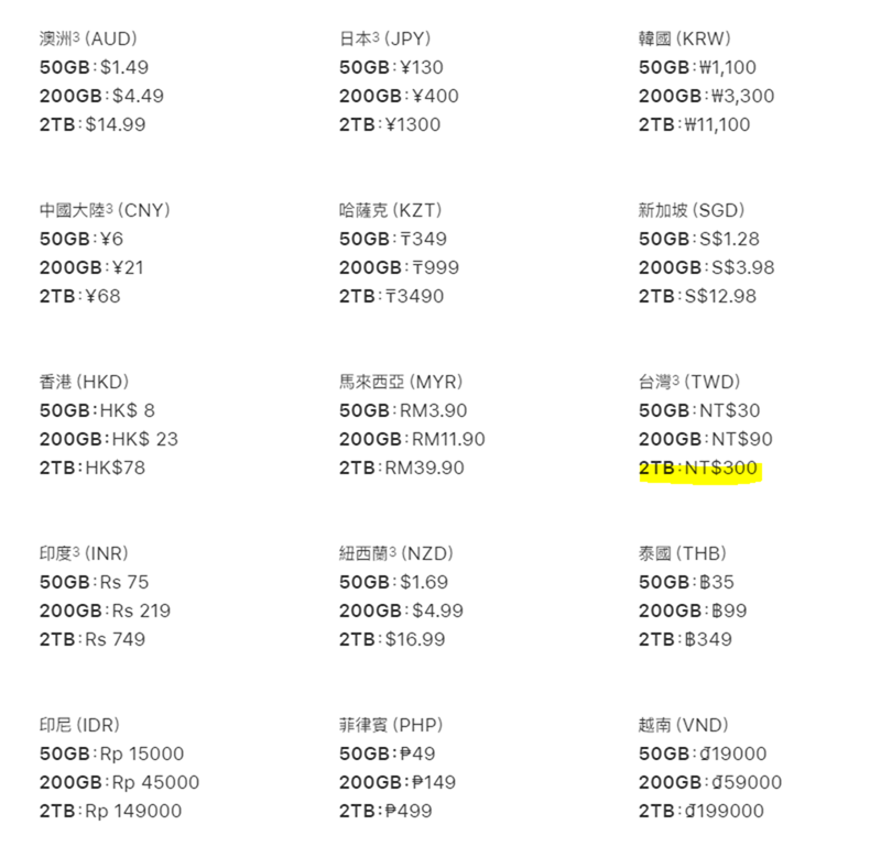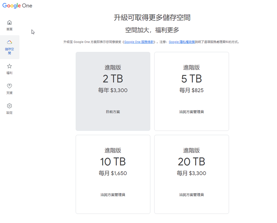 阿輝就以 2TB 大空間的 GOOGLE Drive 和 iCloud+ 使用方案來舉例給大家參考: