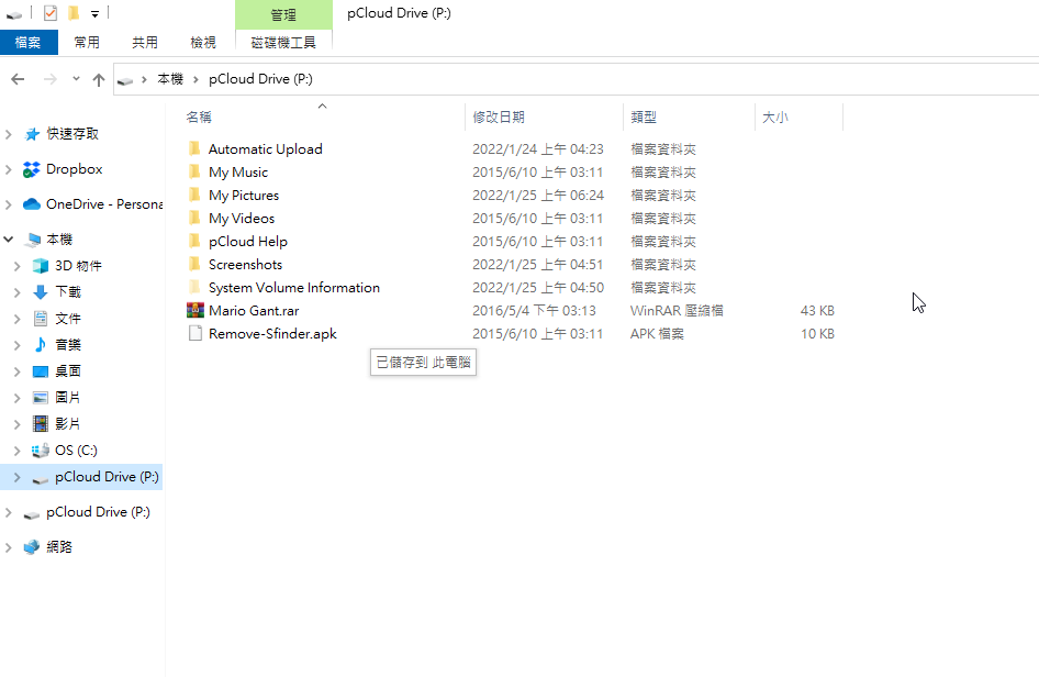 桌面版安裝以後,會在資料夾的地方直接看到一個 PCLOUD 的虛擬硬碟圖示,依照自己購買的方案最高可以有多 2TB 的儲存空間,並且不會佔據本機使用的空間,可以自由創建新資料夾,並移動檔案到雲端的資料夾中直接上傳備份,不需特別開啟額外的程式就可以存取或移動檔案。