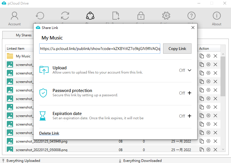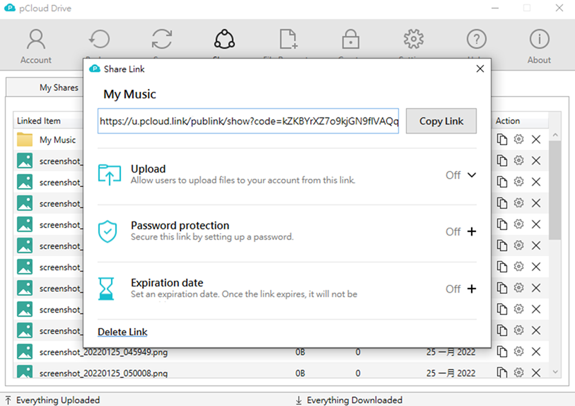 - 能夠輕易的管理分享檔案後的連結,可設定時間自動失效,亦可手動刪除已經分享的連結,保障檔案隱私管理的部份