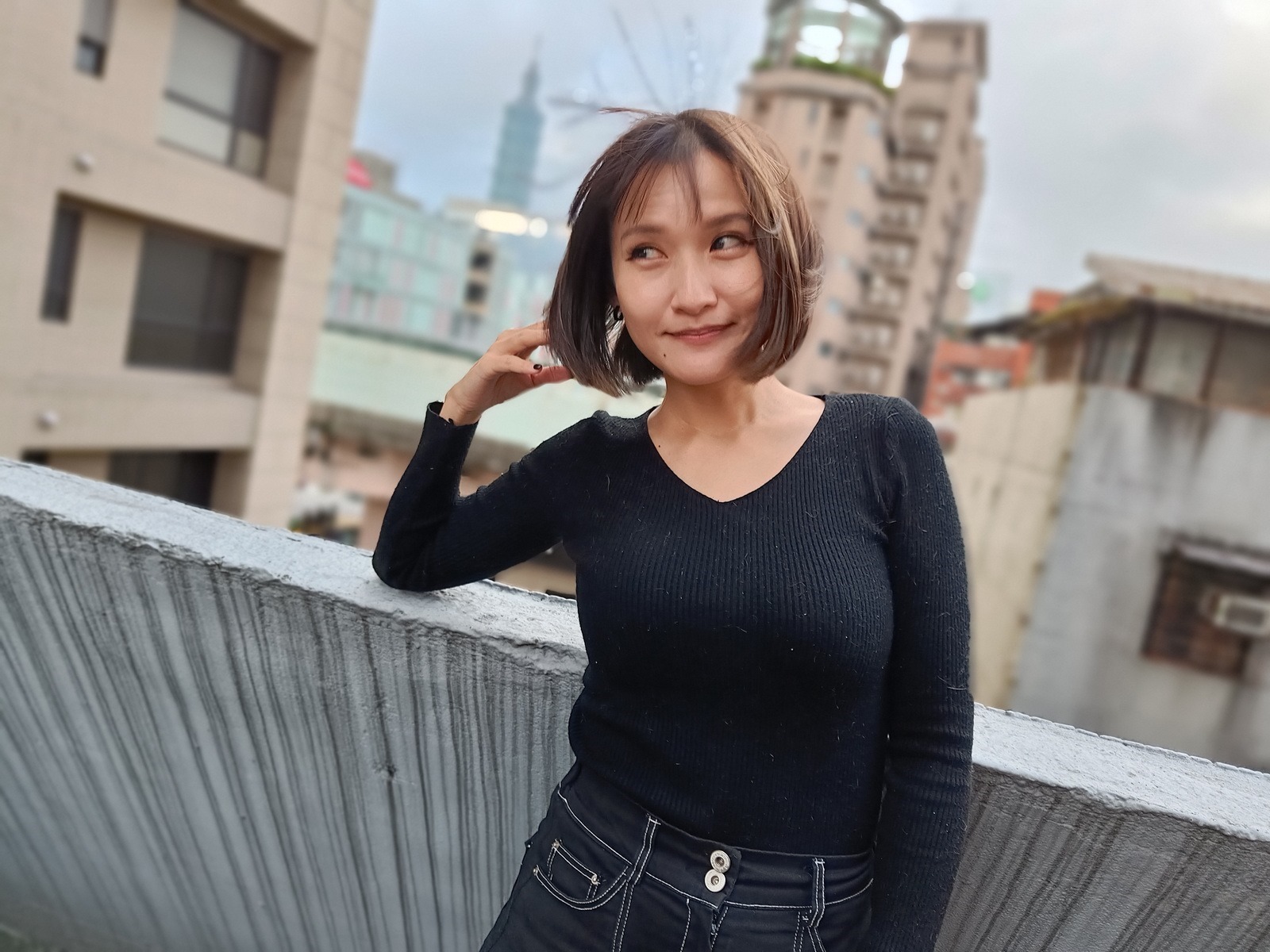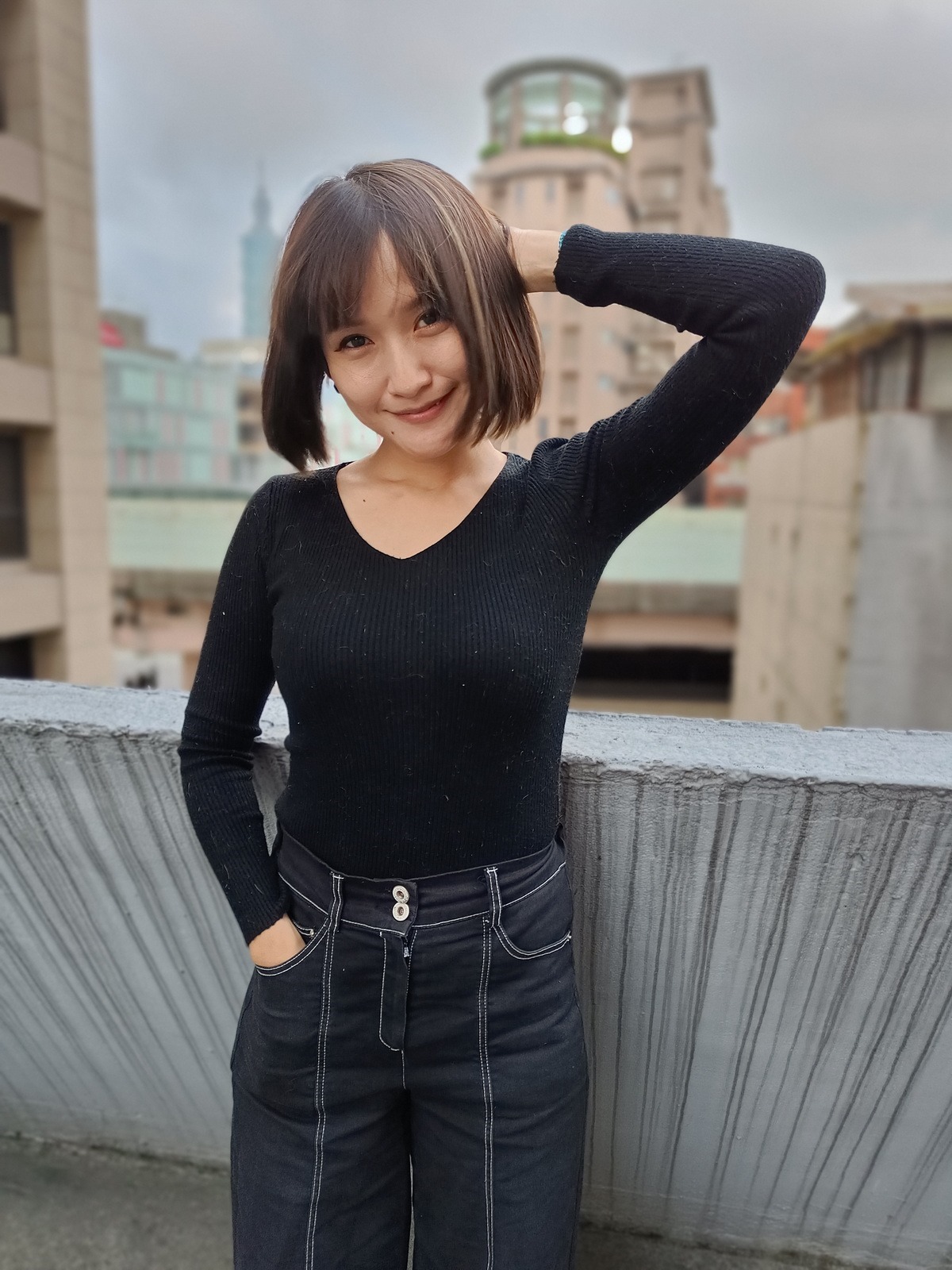 自拍方面 realme 9 Pro+ 採用 1600 萬像素 f/2.4 光圈的前鏡頭,也提供了基於 AI 技術的景深效果與美肌效果,這裡也請合作妹子自拍給大家參考!