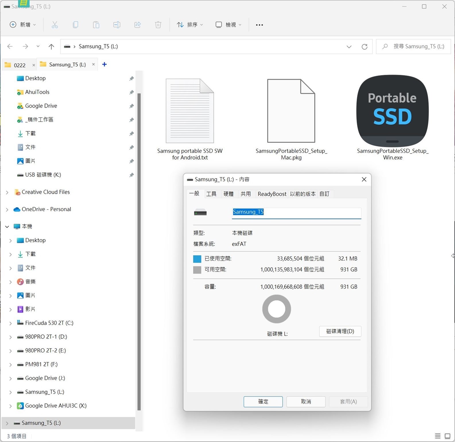 T5 1TB 版本實際可用空間約 931GB,與 T7 是相同的
