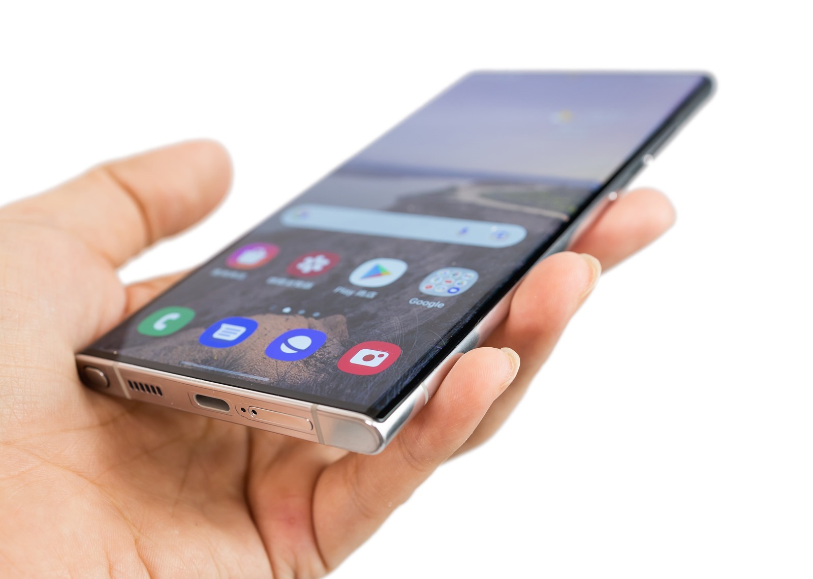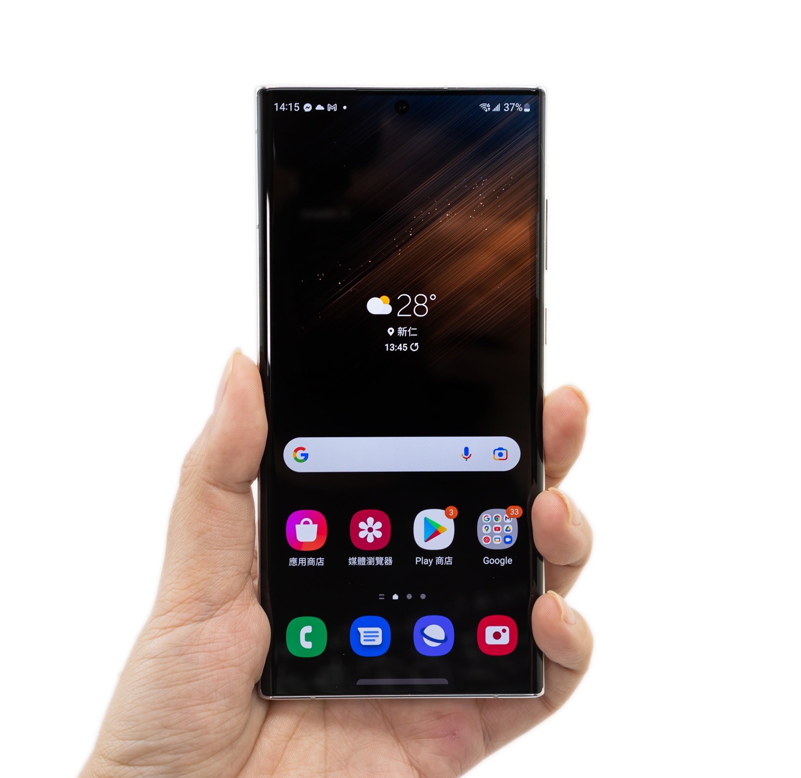 Galaxy S22 Ultra 則是與 Note20 Ultra 類似的曲面螢幕,主要是在超大 6.8 吋螢幕的同時,儘可能給用戶依舊有較為舒適的握持感