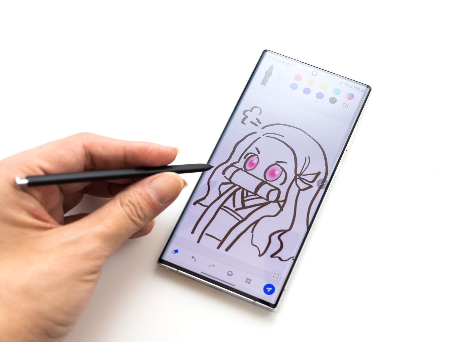 S Pen 功能基本上都延續了之前 Note 系列手機的全部功能,比較重點的升級是筆觸的延遲從本來就非常快的 9ms 更大幅度縮短到 2.8ms,手寫/繪圖都會有更好的手感