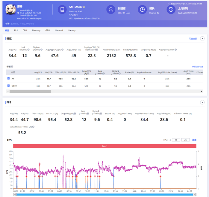 目前測試下來老實說 Galaxy S22 Ultra 在原神運作上不算好表現,儘管在遊戲工具中已經手動設定以 fps 優先,但似乎 Galaxy S22 Ultra 還是以溫度控制為優先(測試結束機器溫度都不高),以中畫質來講 34.4 fps 的平均張數保現在 S8 Gen 1 處理器上應該算是數一數二的低… 目前也沒有找到什麼可以調整的地方,也許之後有更新系統或是原神更新再和大家補充報告