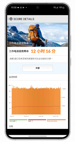 - S22 Ultra 設定更新率為 120Hz 模式 + 解析度 WQHD+ 組合,測試結果為 12 小時 49 分鐘