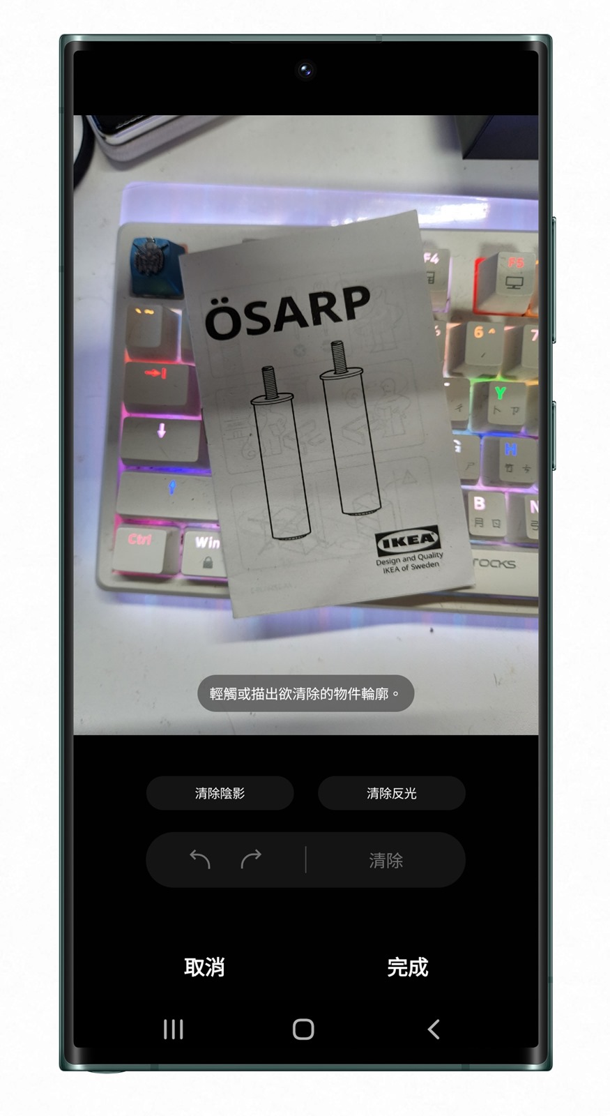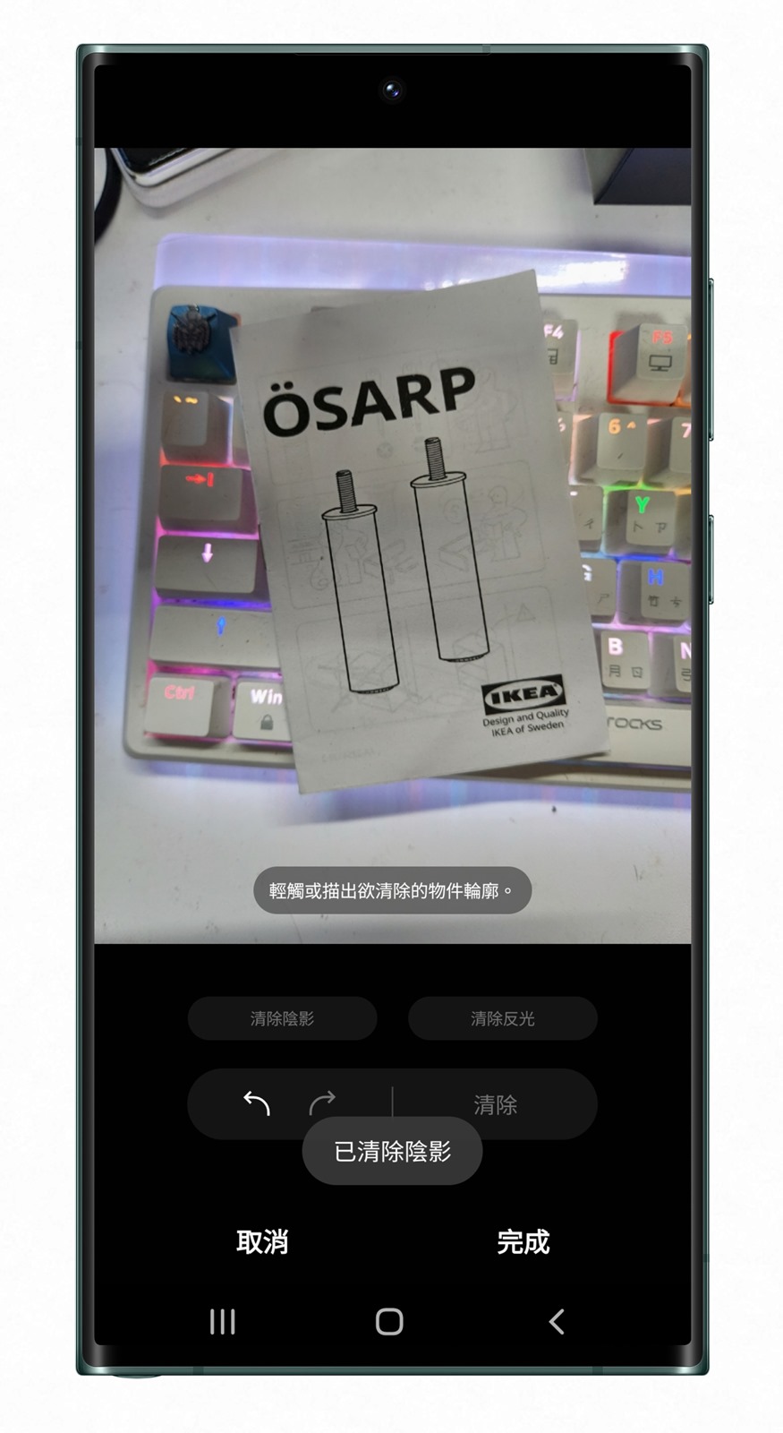 陰影去除功能也是 One UI 4.0 的新功能,效果挺好的~