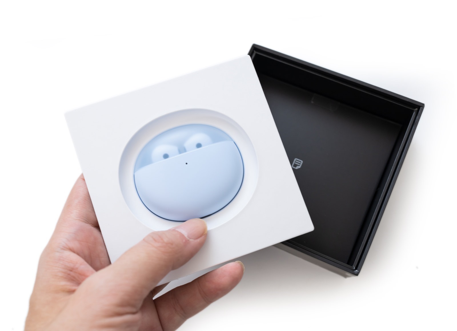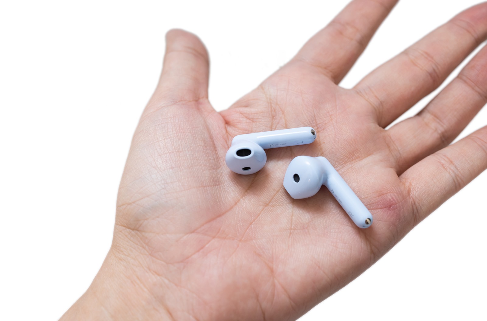 拿出 OPPO Enco Air 2 本體,台灣上市的款式一共有雲霧白與晴空藍兩款顏色可以選擇,今天阿輝開箱的是晴空藍的款式