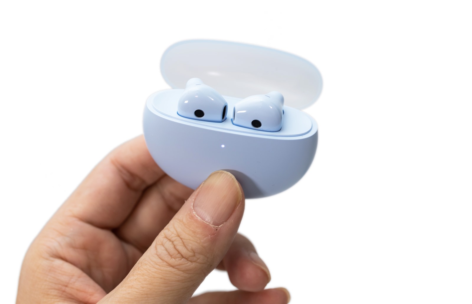 真的要說 OPPO Enco Air 2 的顏值實在優秀!Enco Air 2「晴空藍」配色可以說十分粉嫩活潑!霧面和半透明充電盒設計實在就是好看