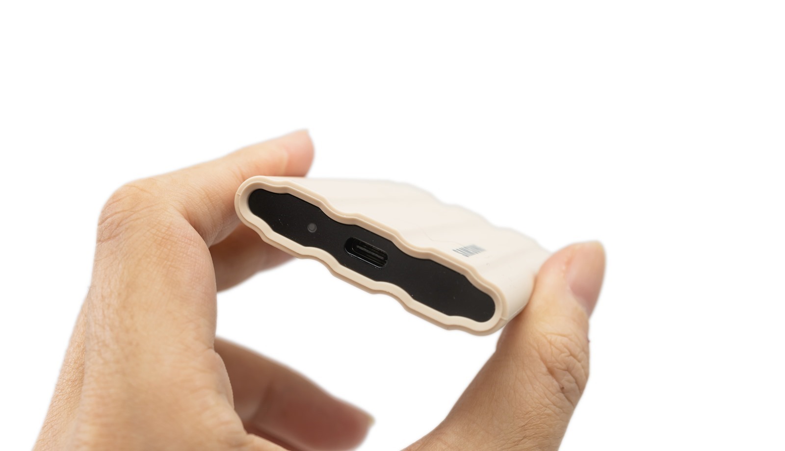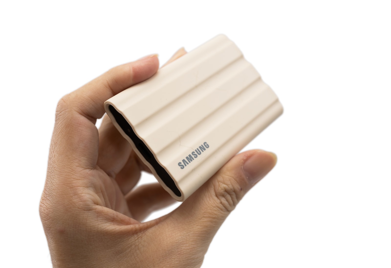 其實入手後有點和想像的不同,與 T7 全金屬的外殼不同,三星 T7 Shield 比較向是在金屬本體外面包覆了一層硬質的橡膠 (?),不過手感也十分不錯,拿在手上也有一定程度防滑的效果