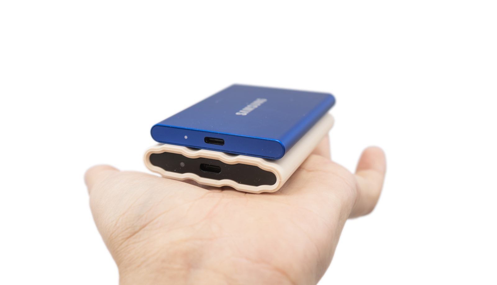 與 T7 大小相比一下給大家參考,基本上稍大稍重,但是一樣都是非常輕巧的大小與重量