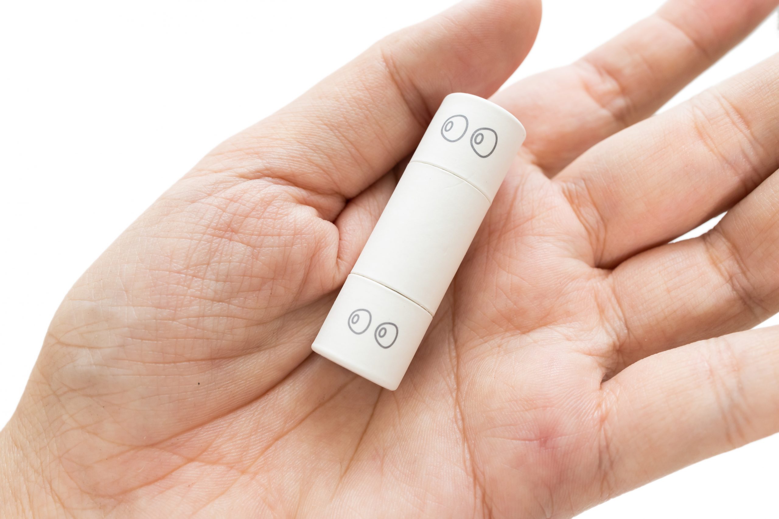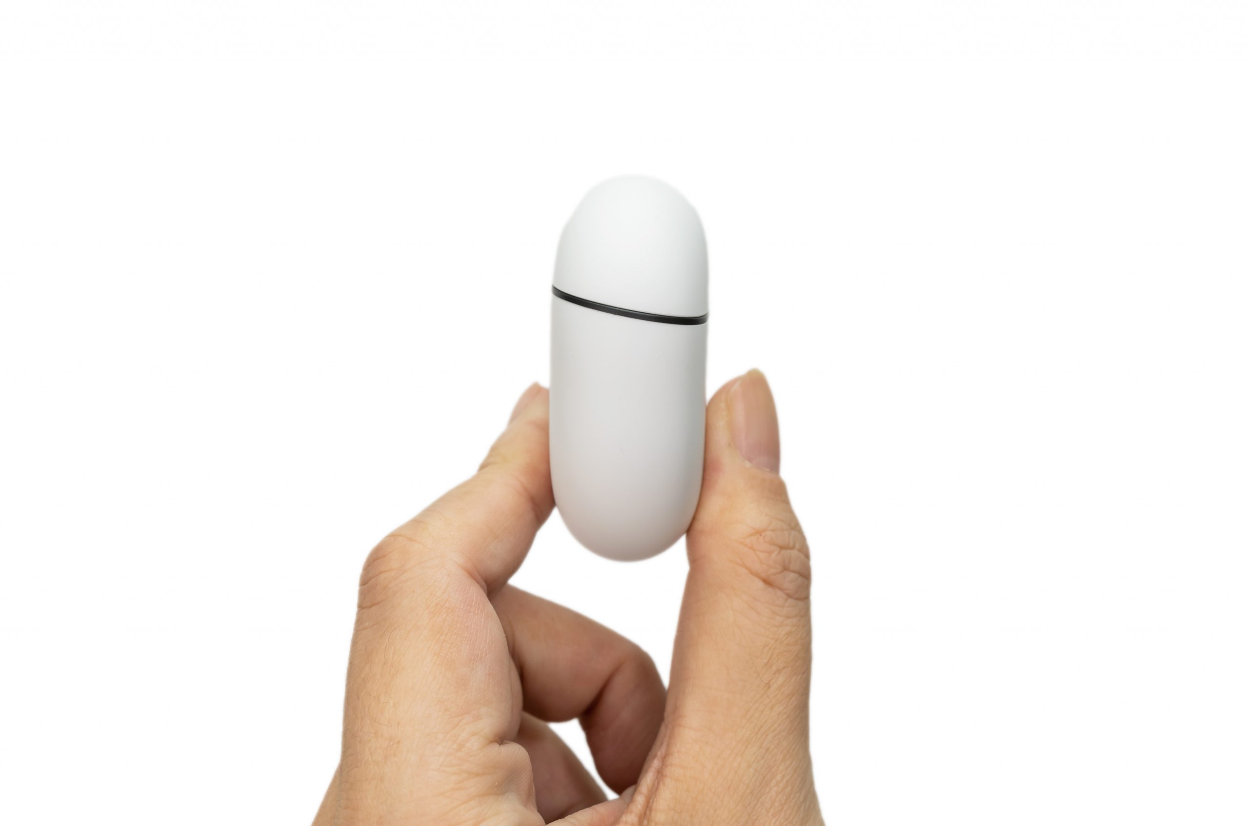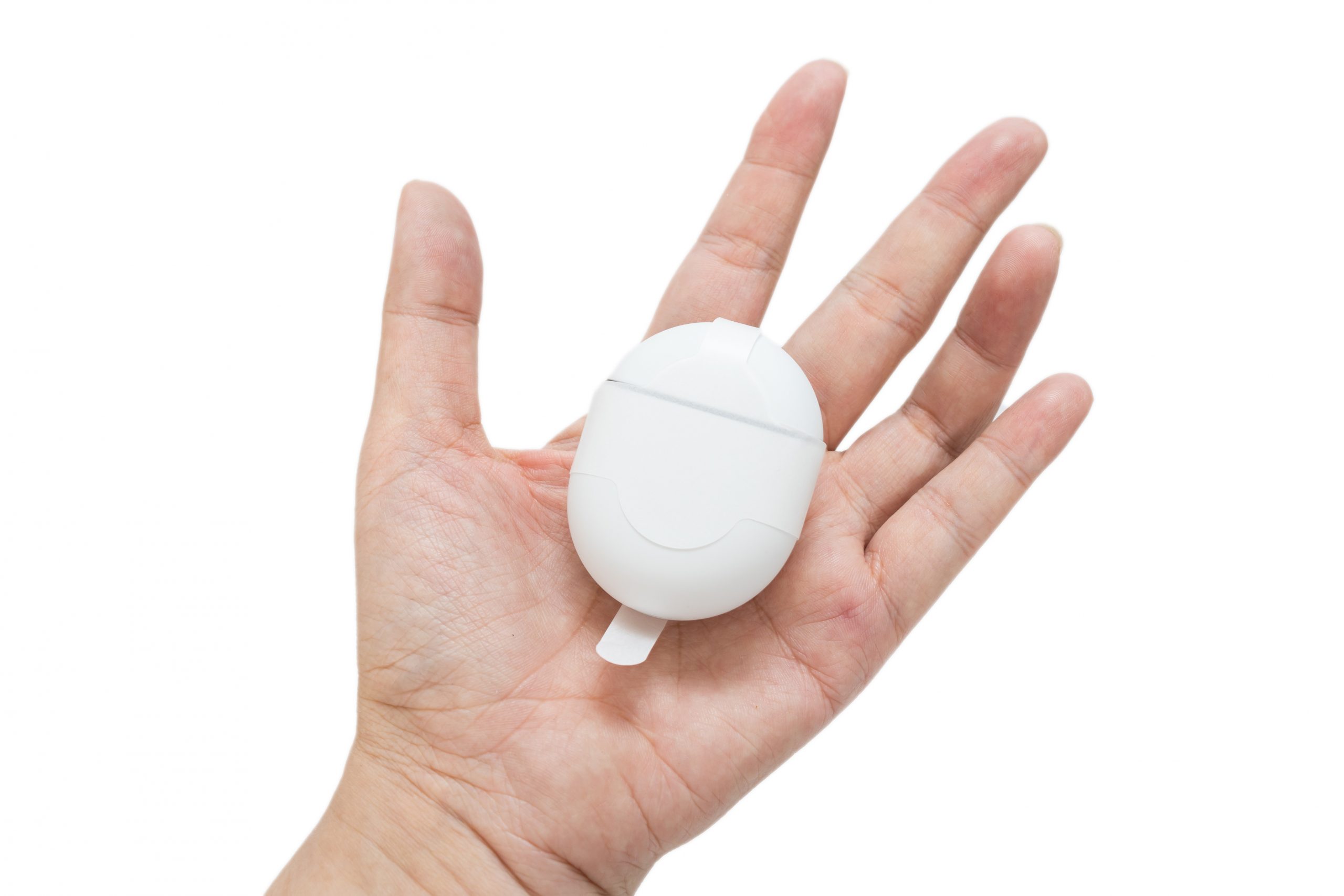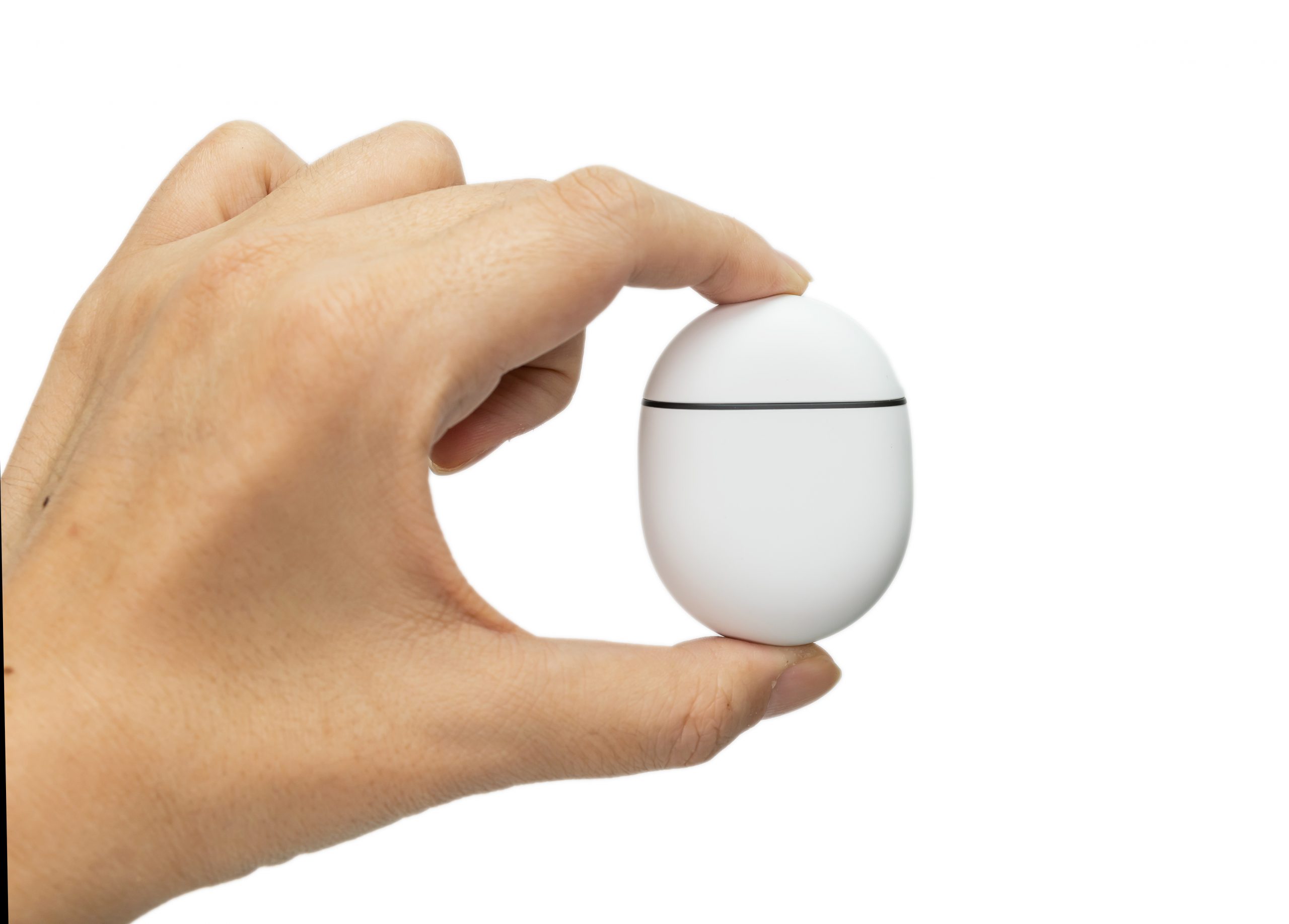 打開盒蓋後可以看到外型像鵝卵石造形的耳機充電盒,同樣是使用紙質的包裝把充電盒稍作包覆做了基本的保護。