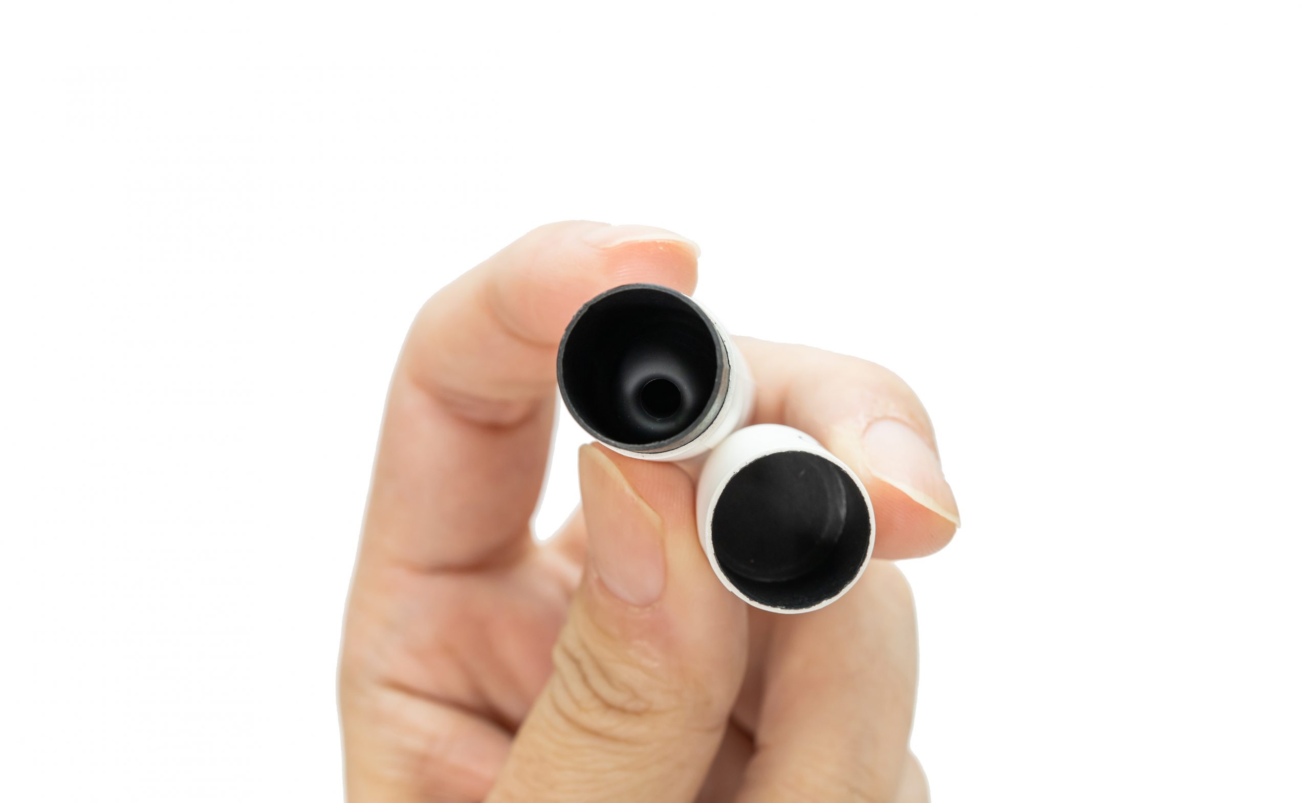 盒裝裡還有一份說明書和一個小圓盒,小圓盒裡放的是 Pixel Buds Pro 內附的另外兩副耳塞套,Pixel Buds Pro 提供有大、中、小型三個尺寸的耳塞套,中型耳塞隨耳機來時已經先安裝在耳機上,紙筒材質的小圓盒裡放的則是另外兩個尺寸的耳塞套,耳塞套也同樣是黑色的外觀。