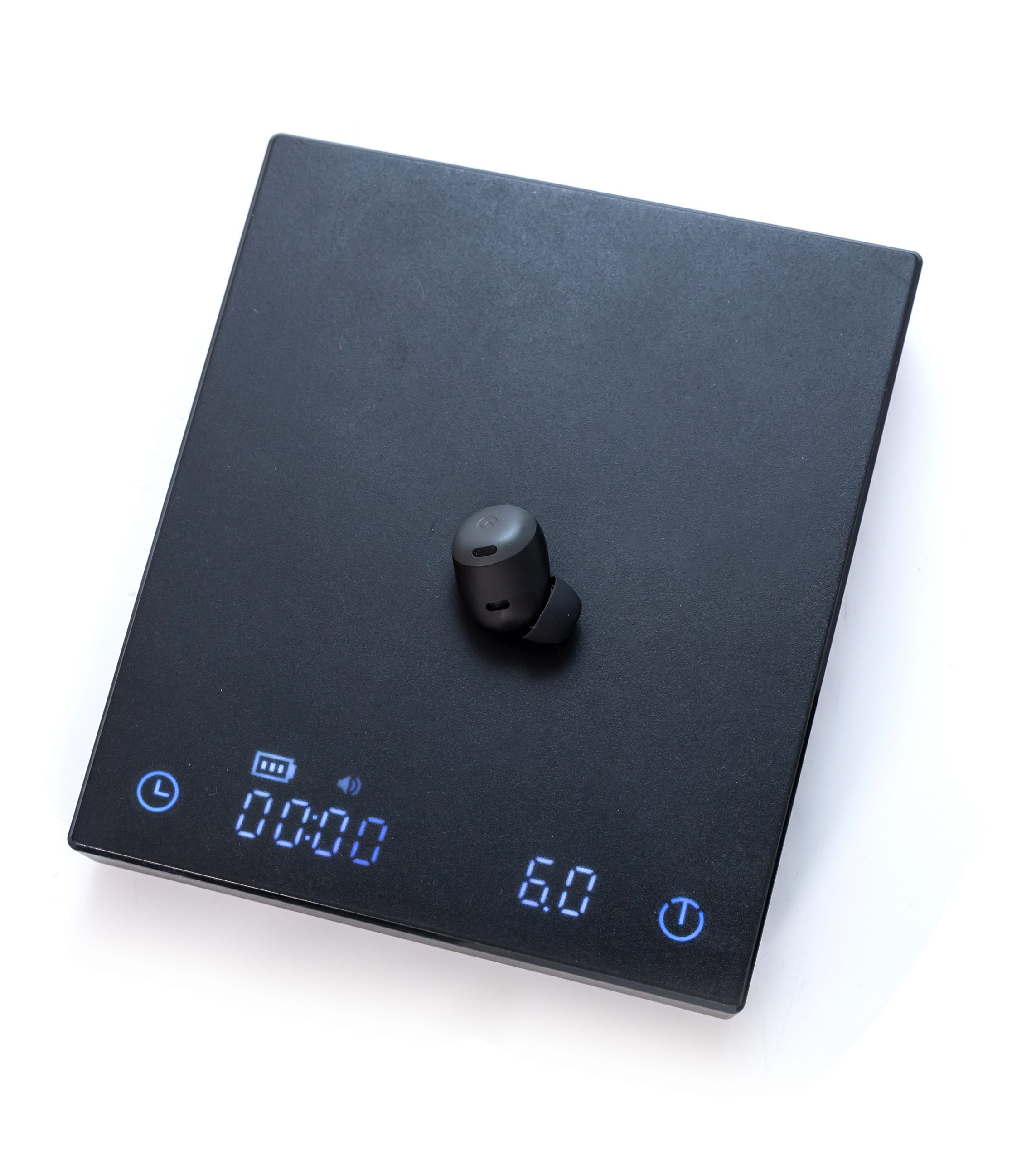 耳機充電盒尺寸約是 6.3*5cm 的大小,厚度大約 2.5cm,重量實測為 62g,尺寸非常小巧,放在口袋裡也很好攜帶且不滑手,收納在包包裡的夾層也都能輕鬆拿取。