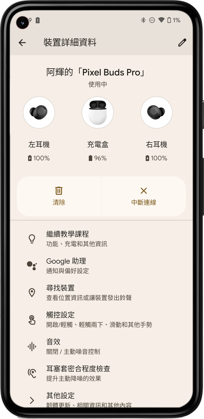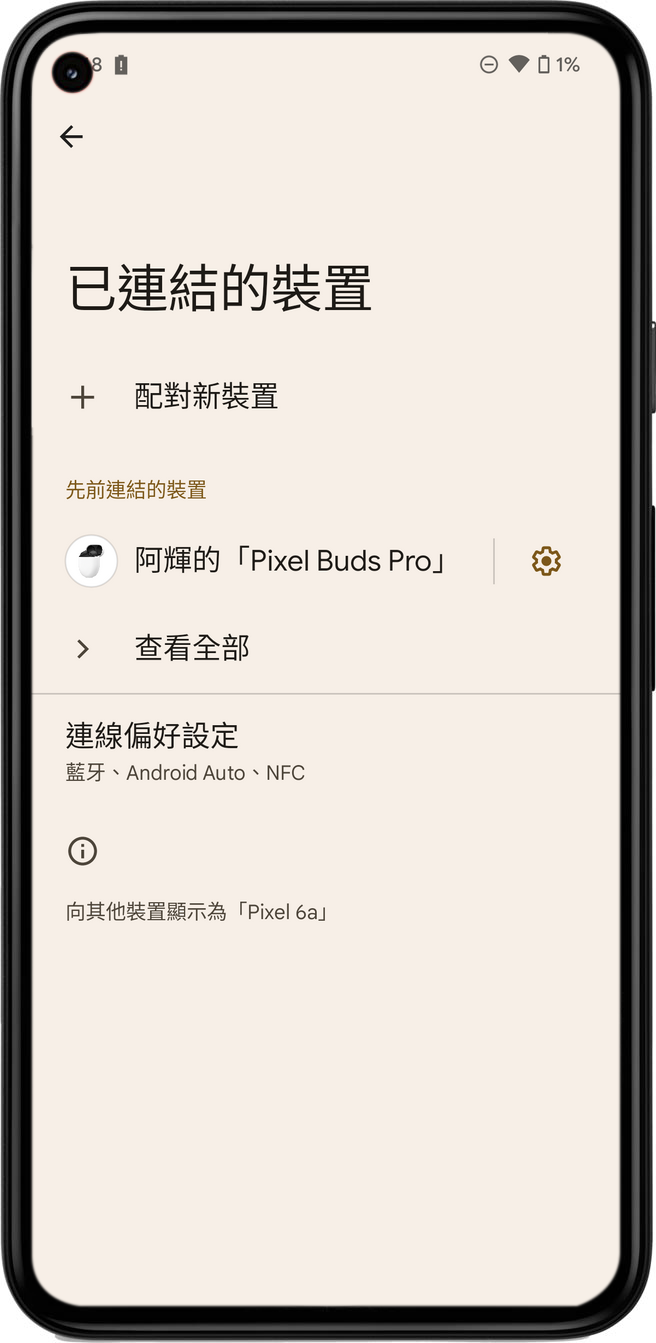 Pixel Buds Pro 提供有藍牙 5.0 的連線功能,能夠連線到任何具有藍牙 4.0 以上連線能力的裝置,但是若搭配使用同為 Google 推出的 Pixel 手機的話,更能體驗 Pixel Buds Pro 的完整功能,阿輝這邊也搭配阿輝主力機 Pixel 6 Pro 與最近剛開箱評測過的 Pixel 6a 來使用給大家參考。