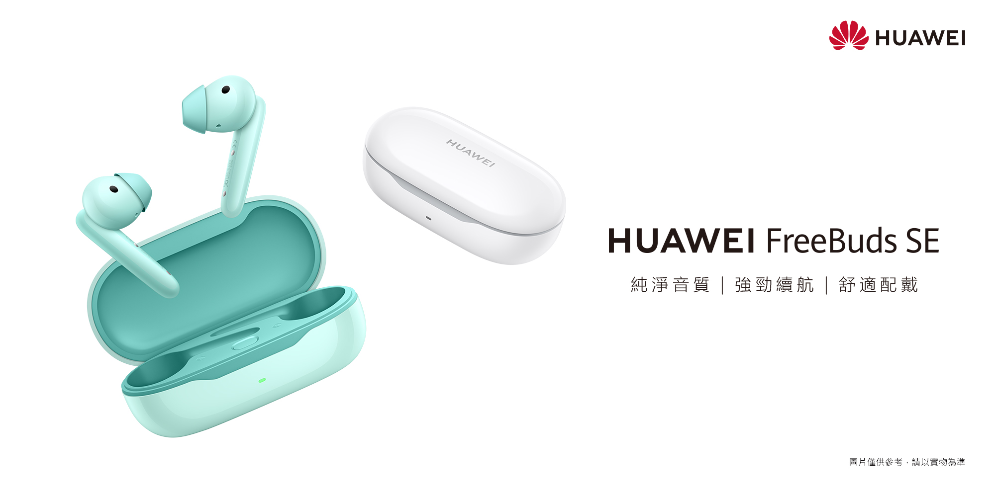 FreeBuds SE 共有藍與白兩色,售價 NTD $1,490,8/1 起開放預購,8/15 起於各通路開賣。