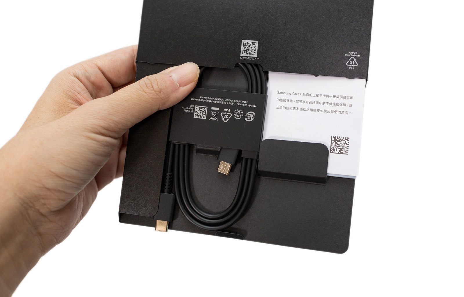 開箱!Galaxy Z Fold4 也是因應環保的趨勢,盒內有卡針與傳輸線,並沒有內附充電器與保護殼,大家可以沿用之前原有的充電器或是依照需求另外選購