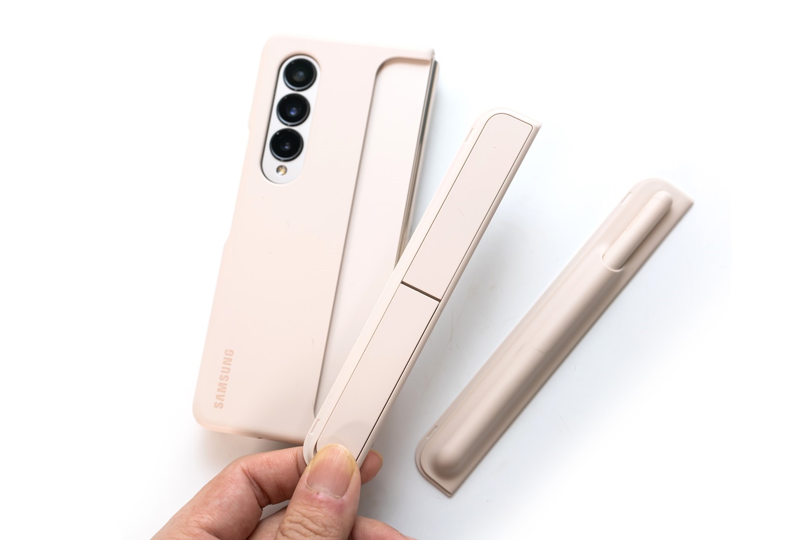 阿輝這一次也有一起購入原廠專為 Z Fold4 推出的立架式保護殼(附 S Pen),也是選擇對應機身顏色的星沙白也和大家分享