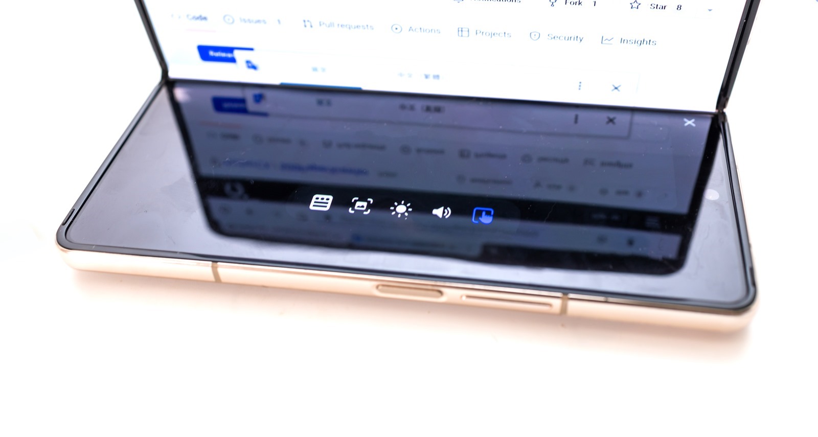 這一次 Z Fold4 與 Z Flip4 在翻轉模式中還有新增一個分割畫面模式面板,除了本身程式例如相機自己支援功能之外,也會有共通的分割畫面模式面板,可以快調整亮度、抓圖、調整音量、甚至是滑鼠游標觸控板,有一點像是小筆電的模式
