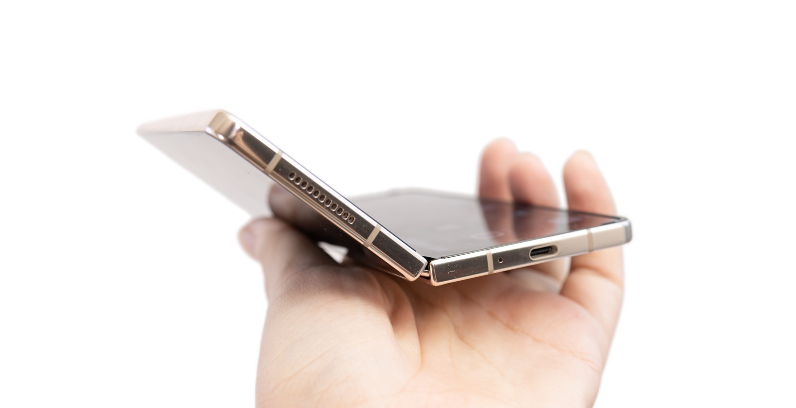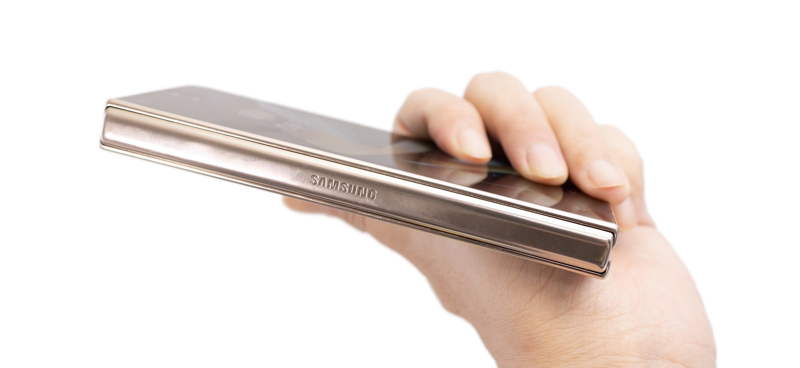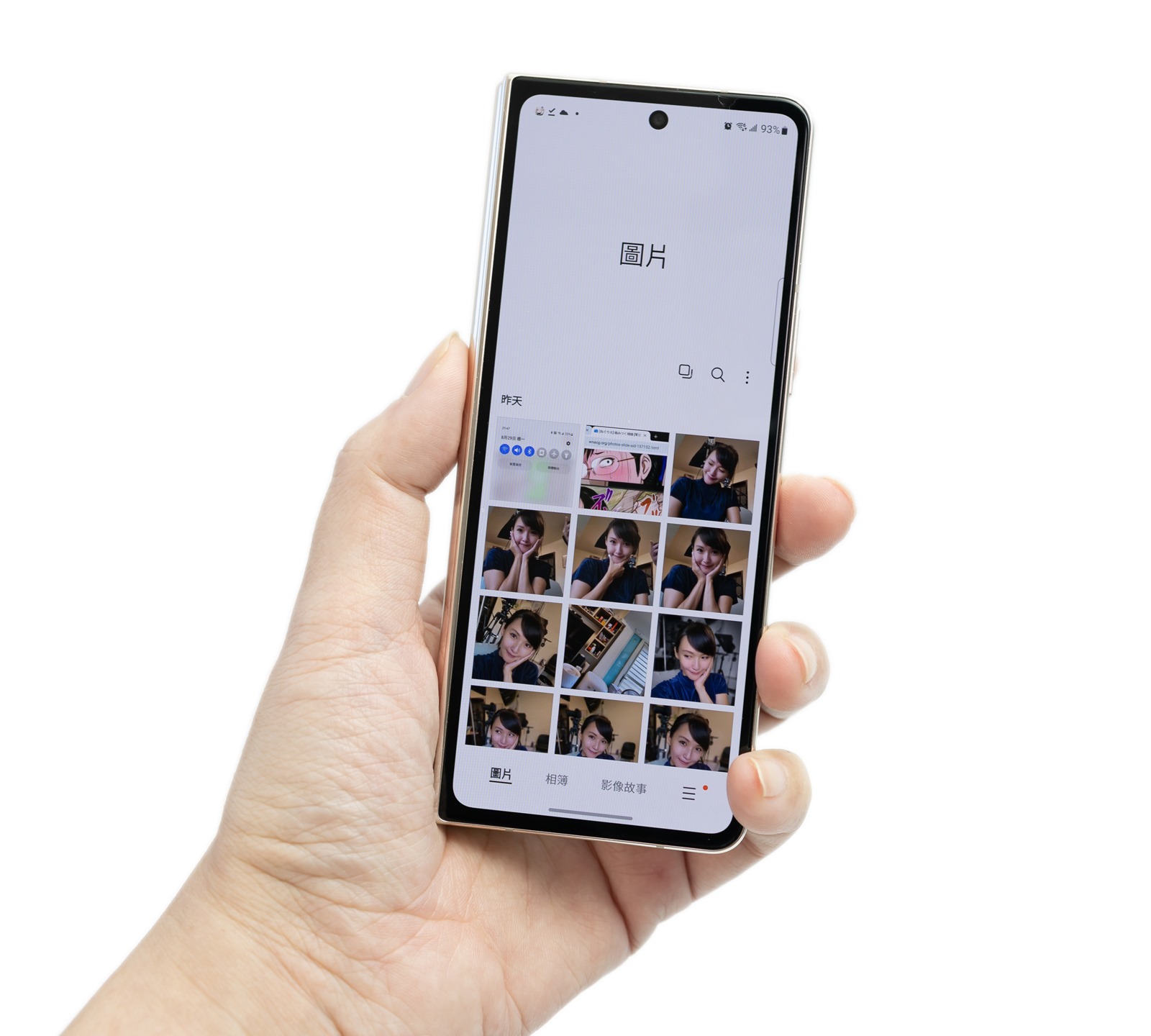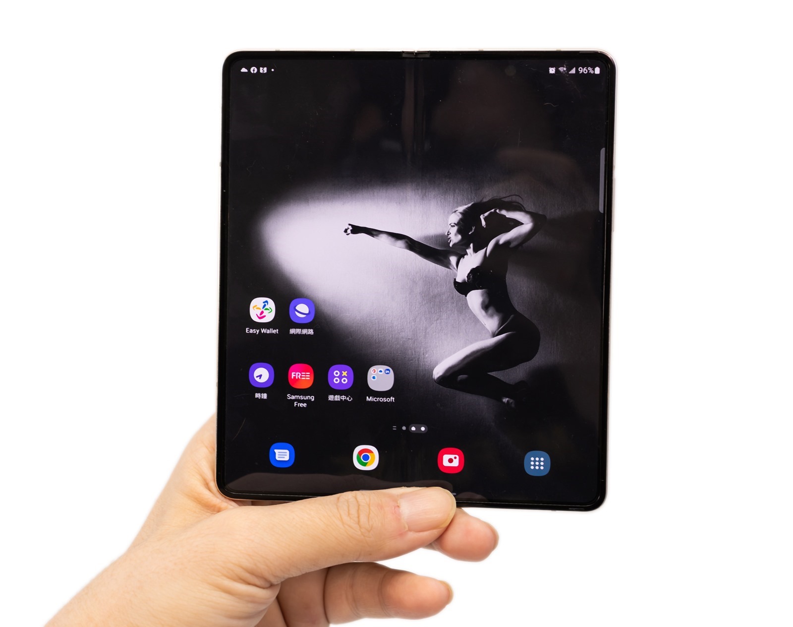 相較於前一代 Z Fold4 的鉸鍊更加小型化,機器更輕與略窄的機身的可以說握持手感非常優異