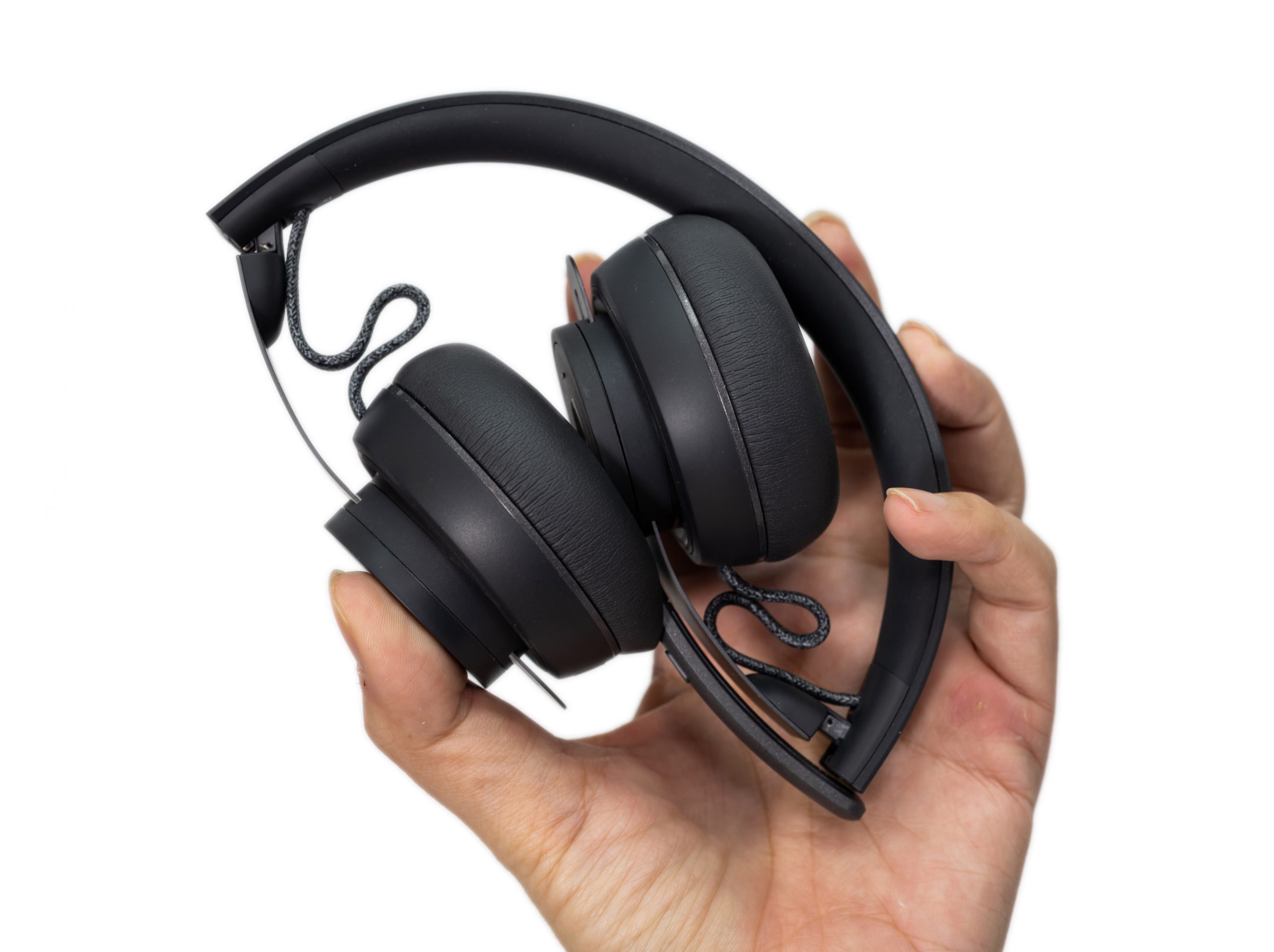 頭墊的部份都使用了輕盈的矽膠軟墊,提供了很棒的配戴舒適感耳罩的部份更使用的柔軟的的人皮革,久戴使用也不過熱,在頭墊與耳罩連接的部份也可以看到有一條用於讓你依頭型尺寸可調整配戴鬆緊度的繩子,可收放的範圍相當廣,上下拉動就可以調整,適配於各種大小的頭型可做配戴;並且 Zone Wireless 沒有配戴方向性的問題,左耳或右耳的配戴上都沒有特別限制;耳罩也是平面的設計,不會讓耳朵有被包覆太久時有太熱的問題。