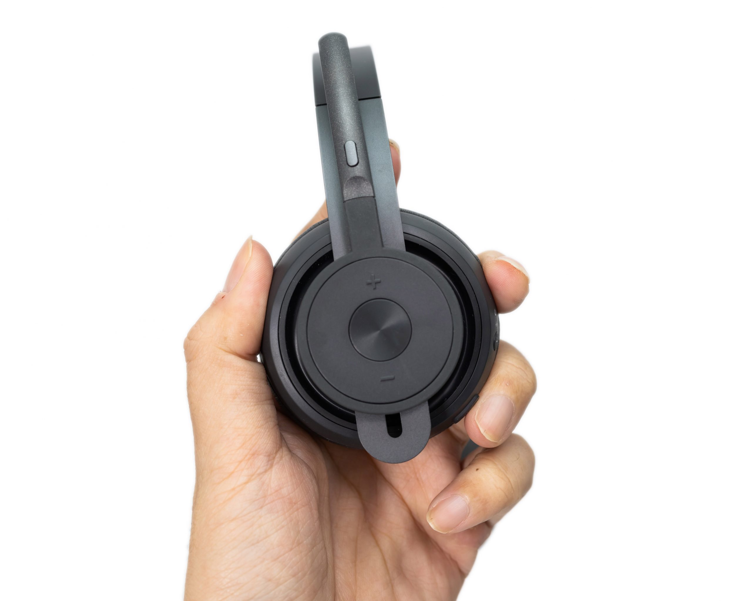 和麥克風同一側的耳罩上有聲量控制鈕,還有中間的一圈是多功能控制鈕,短按可以用來接聽電話長按兩秒則可以拒絕來電,喚出語音助理也是長按兩秒多功能控制鈕,在音樂播放模式時按兩下則是可以用於開始或暫停播放音樂,如果想要控制音樂的前一首或後一首,則是同時按下多功能控制鈕加上+或-短按一下;單按+-鍵則是可以用於控制音量大小。