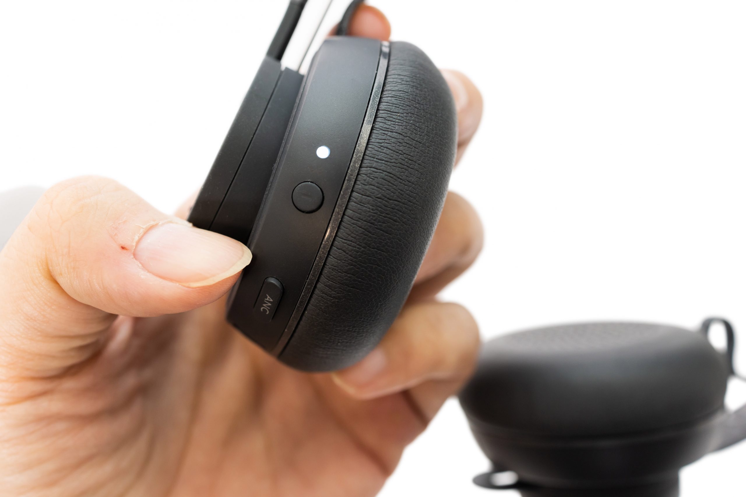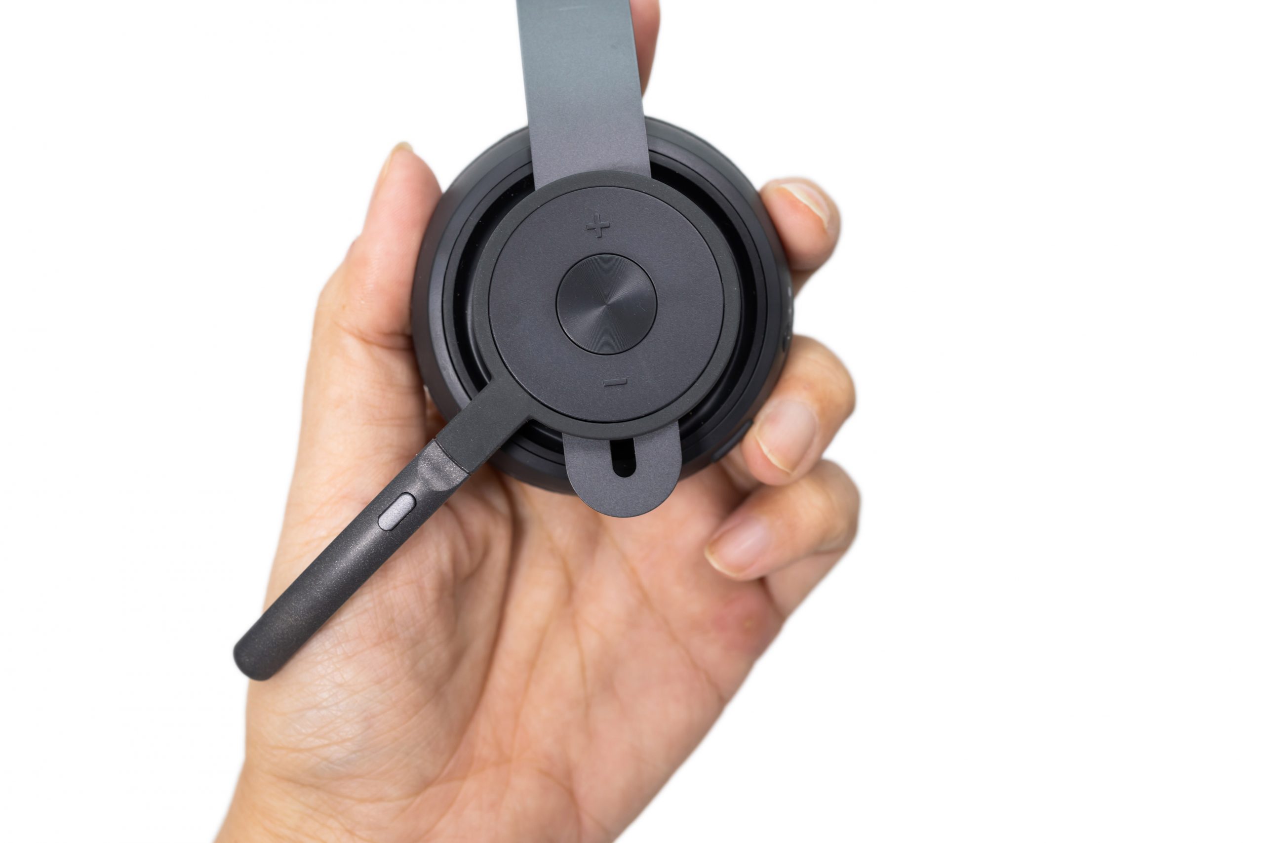 對於需要安靜才能專注工作的人來說,ANC 主動降噪功能更是重要,按下 ANC 鍵就會聽到耳機提示降噪開啟或關閉的提示,語音通知也能透過 Logi Tune app 做關閉,在需要與旁人對話時也可按一下 ANC 鍵關閉降噪功能。