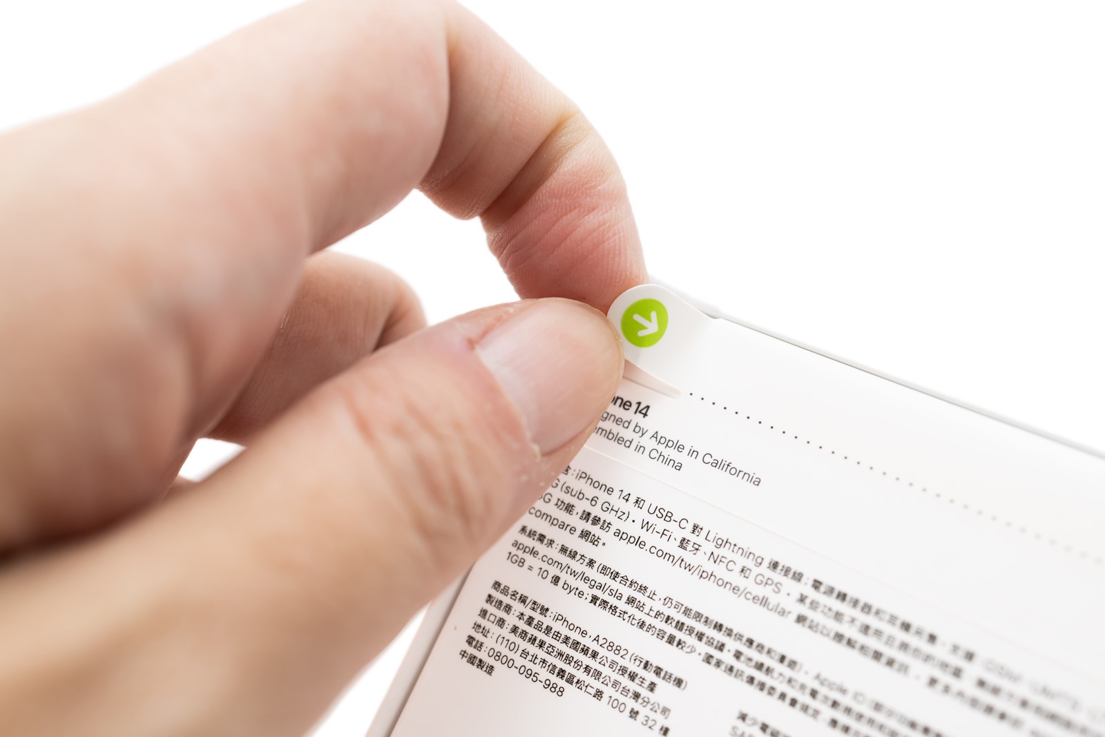 蘋果在科技產業中對於環保的要求與努力真的可以說是資優生等級,從 iPhone 12 開始其實手機本身螢幕上的保護膜就已經改成了紙質的設計,喔對了打開盒子當然就馬上印入眼簾的就是 iPhone 14 的美背
