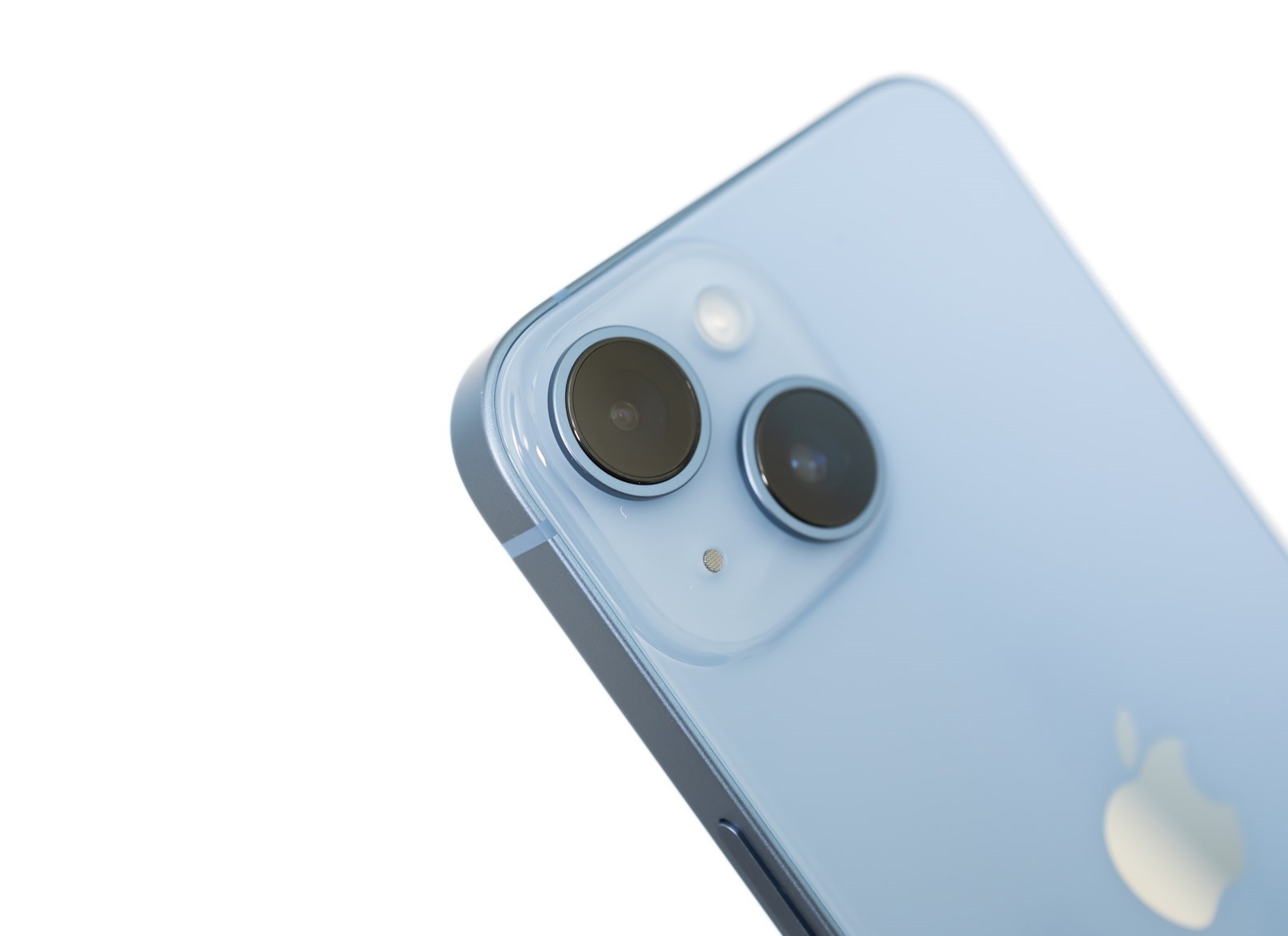 iPhone 14 在機身背面設計是採用亮面玻璃加上為鋁金屬材質邊框霧面處理的組合,鏡頭區域則是霧面玻璃的搭配