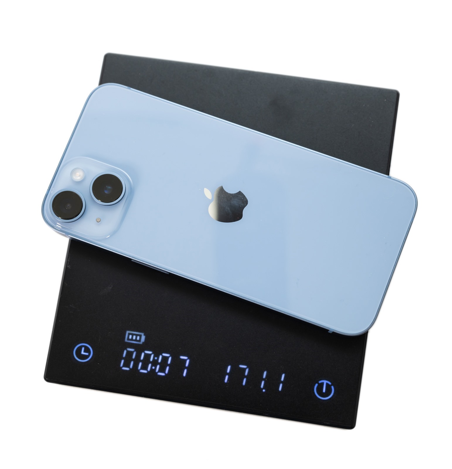 iPhone 14 來實際量一下重量,iPhone 14 實測 171g 是 iPhone 14 系列中最輕巧的一款,這一次可以說全系列 iPhone 14 都比 iPhone 13 重了一點點,不過電力續航也都是略微提升
