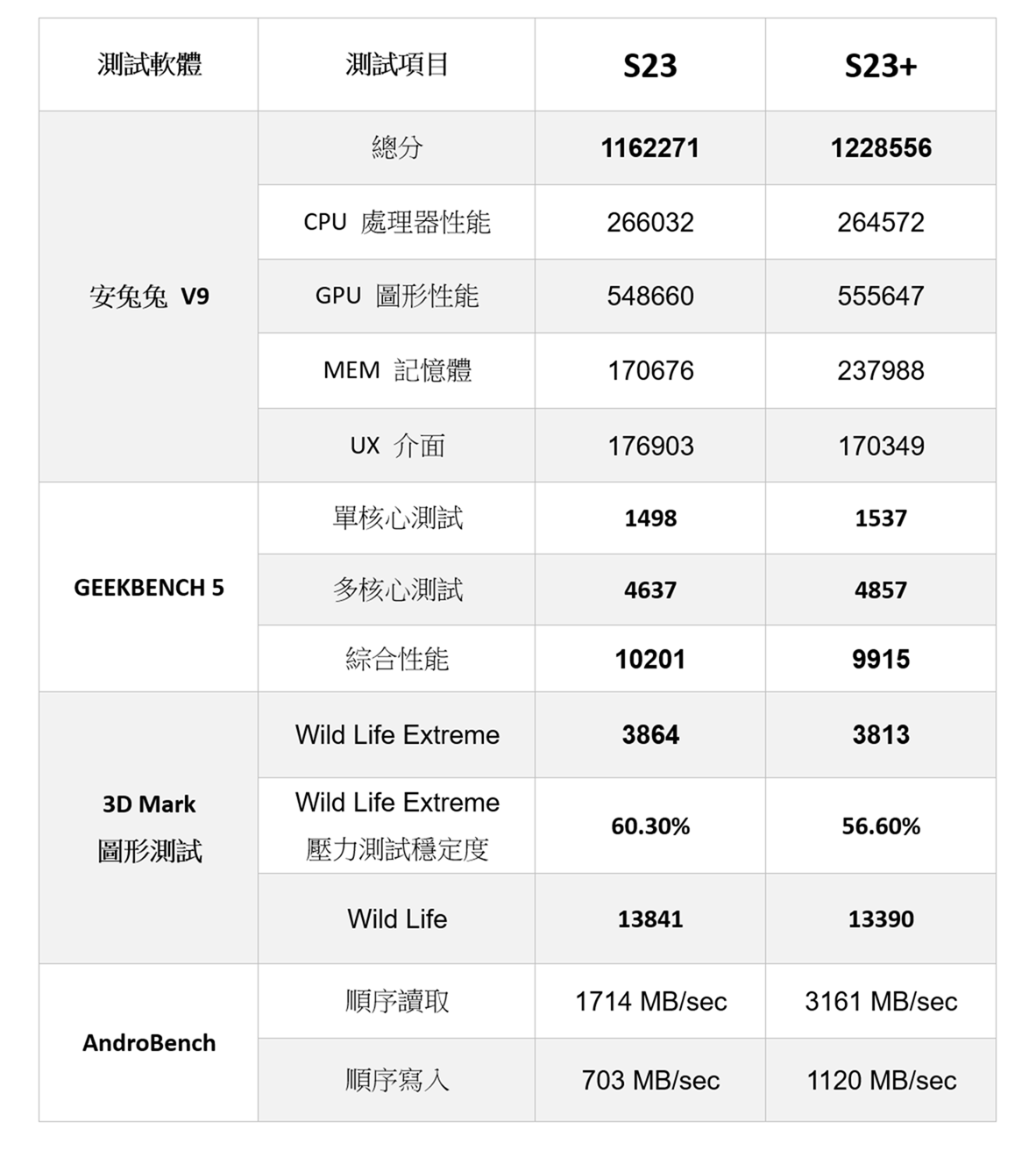 三星 Galaxy S23 / S23+ 性能與續航電力實測