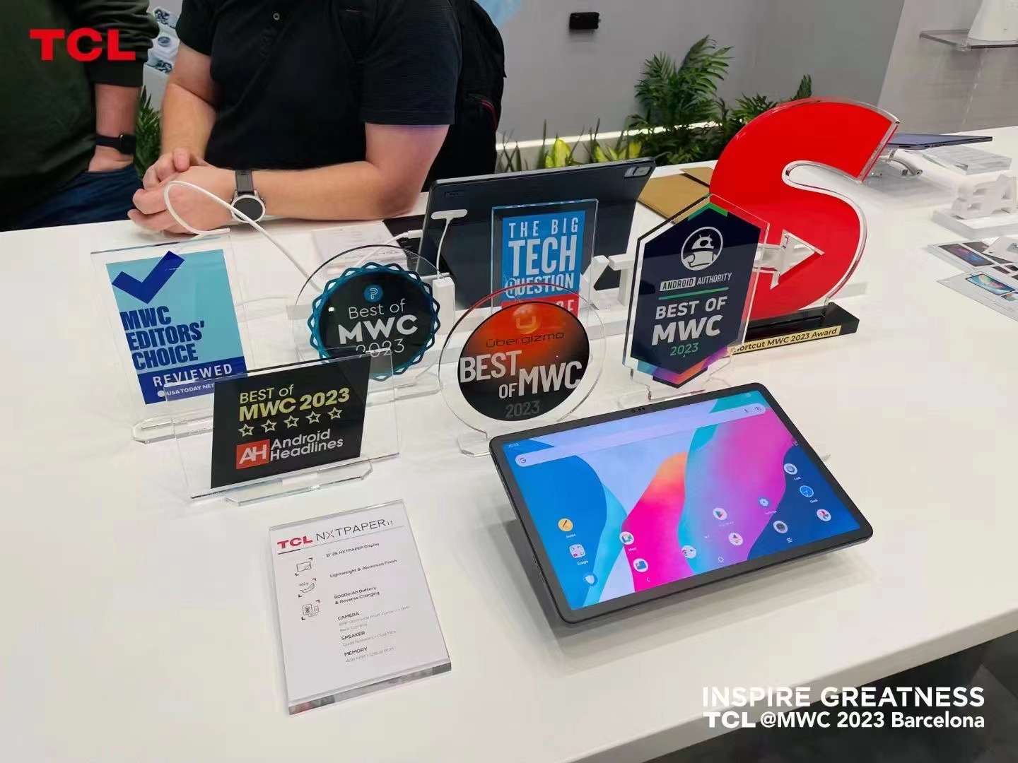 從 2021 年開始 TCL 將顯示效果如同紙面印刷般的 NXTPAPER 反射螢幕用在平板裝置後,TCL 在此次 MWC 2023 宣布推出 2.0 更新版本,並且用於新款 TCL NXTPAPER 11 平板電腦。這款平板電腦的獨特顯示技術 NXTPAPER 2.0 由 TCL 開發,成為了該展覽中最引人注目的產品之一。