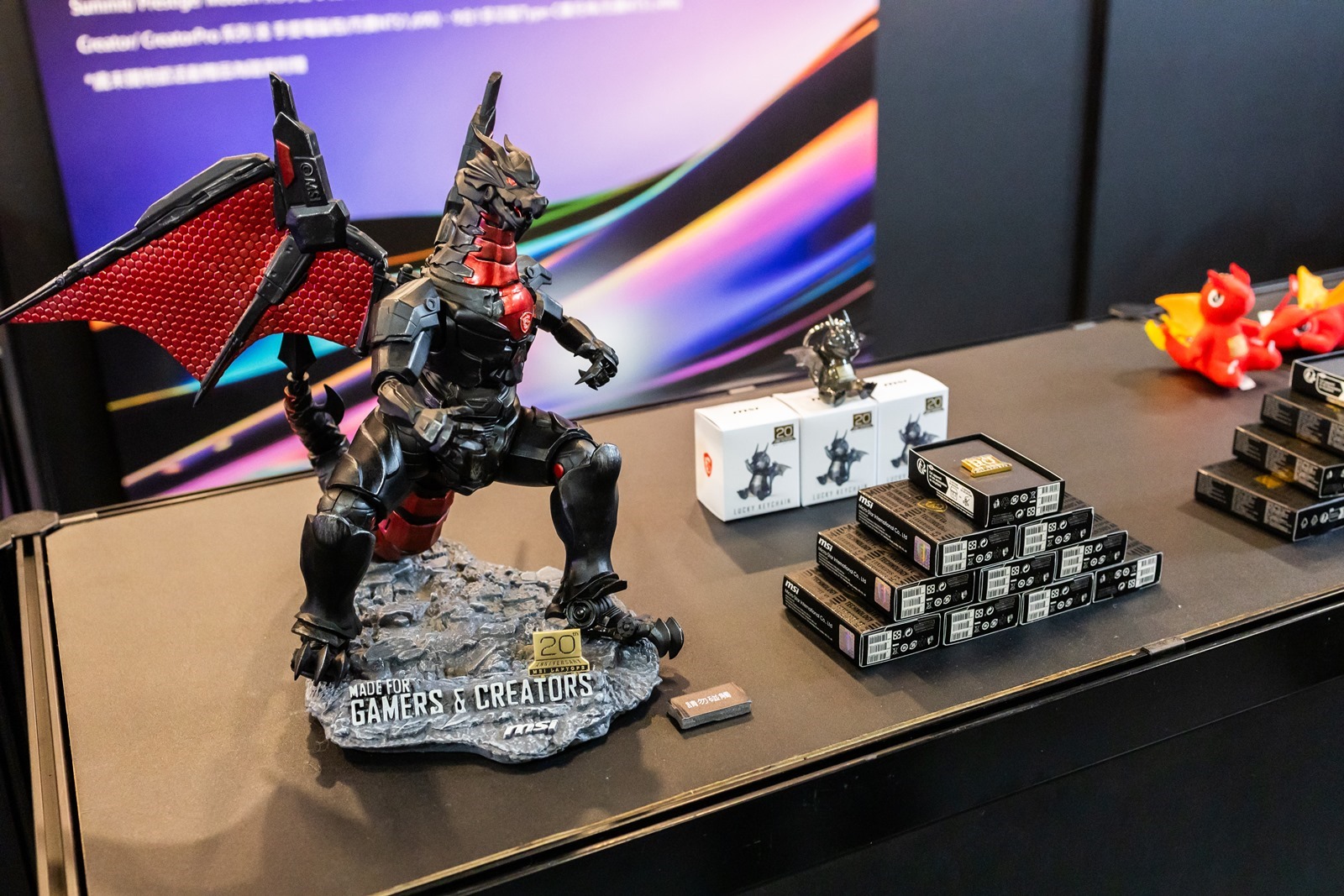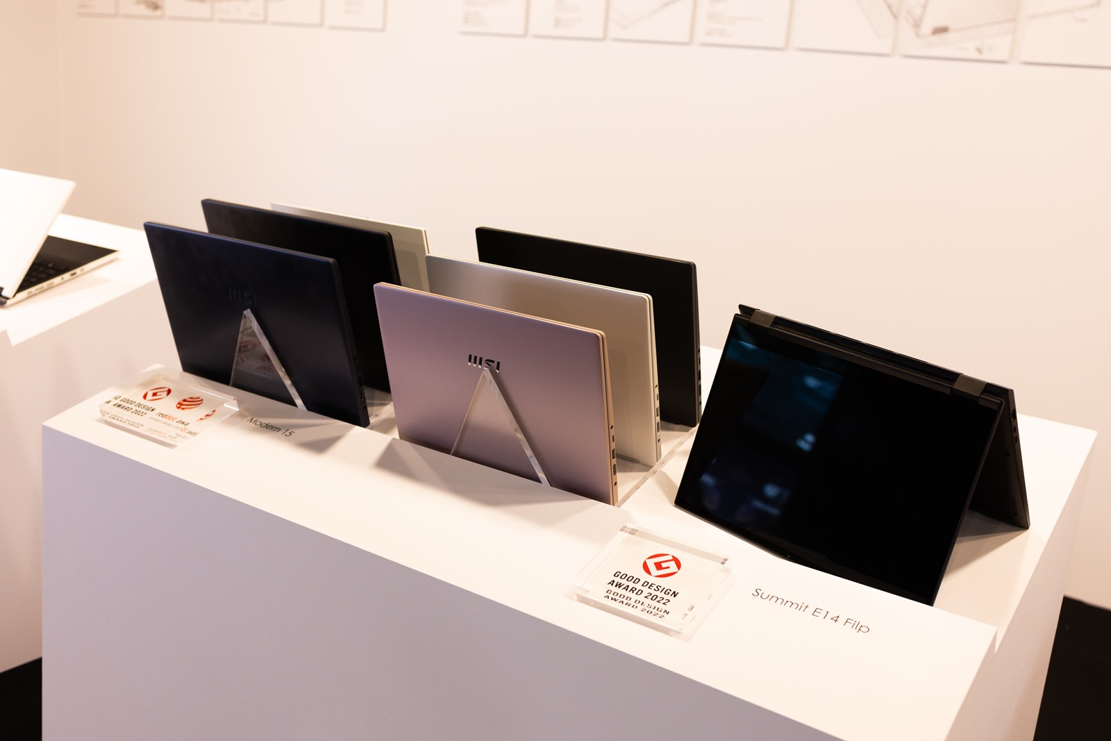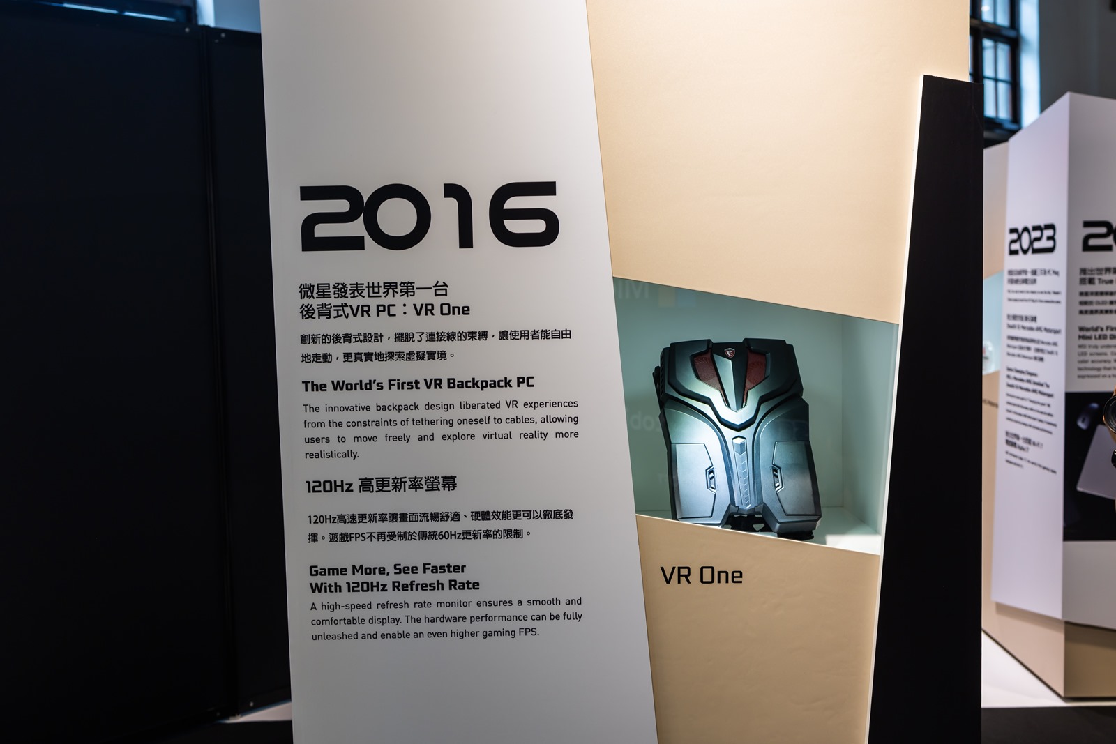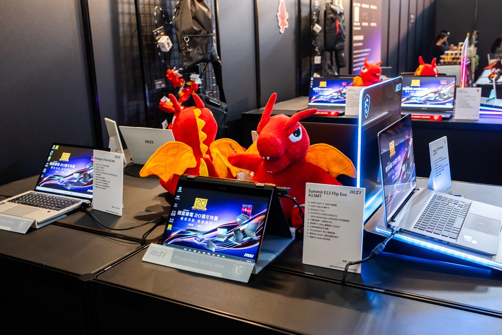 會場入場後先是大螢幕會播放大約 6 分鐘的短片介紹微星的成立與發展歷程,接就是微星筆電 20 週年的時光走廊,從 2004 微星推出第一台筆電開始,以展櫃方式介紹各個重要的歷史里程碑,很棒的是特殊技術/機型現場甚至有展出實機,其中很多機器阿輝都曾經使用或是擁有過真是充滿非常多回憶啊~