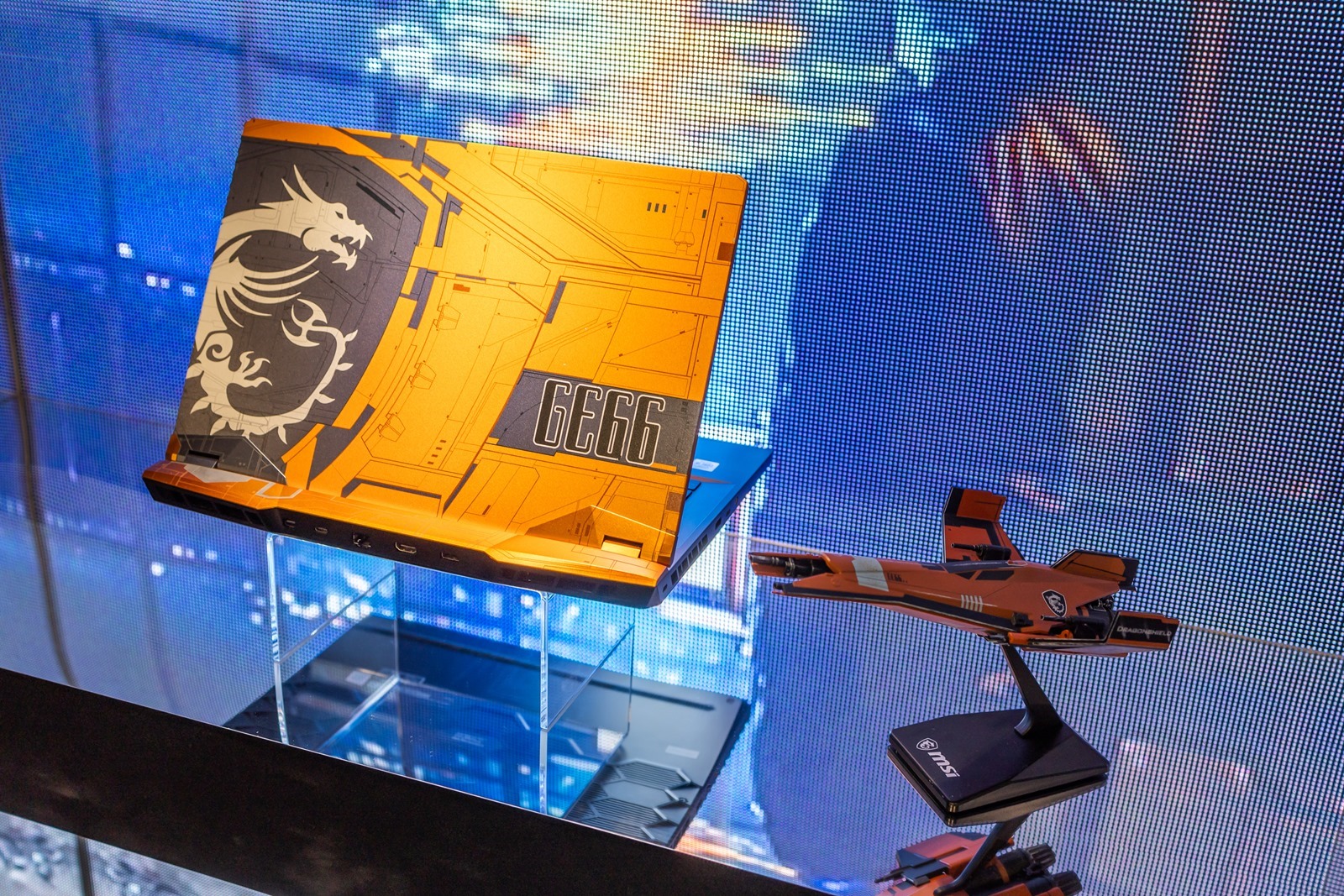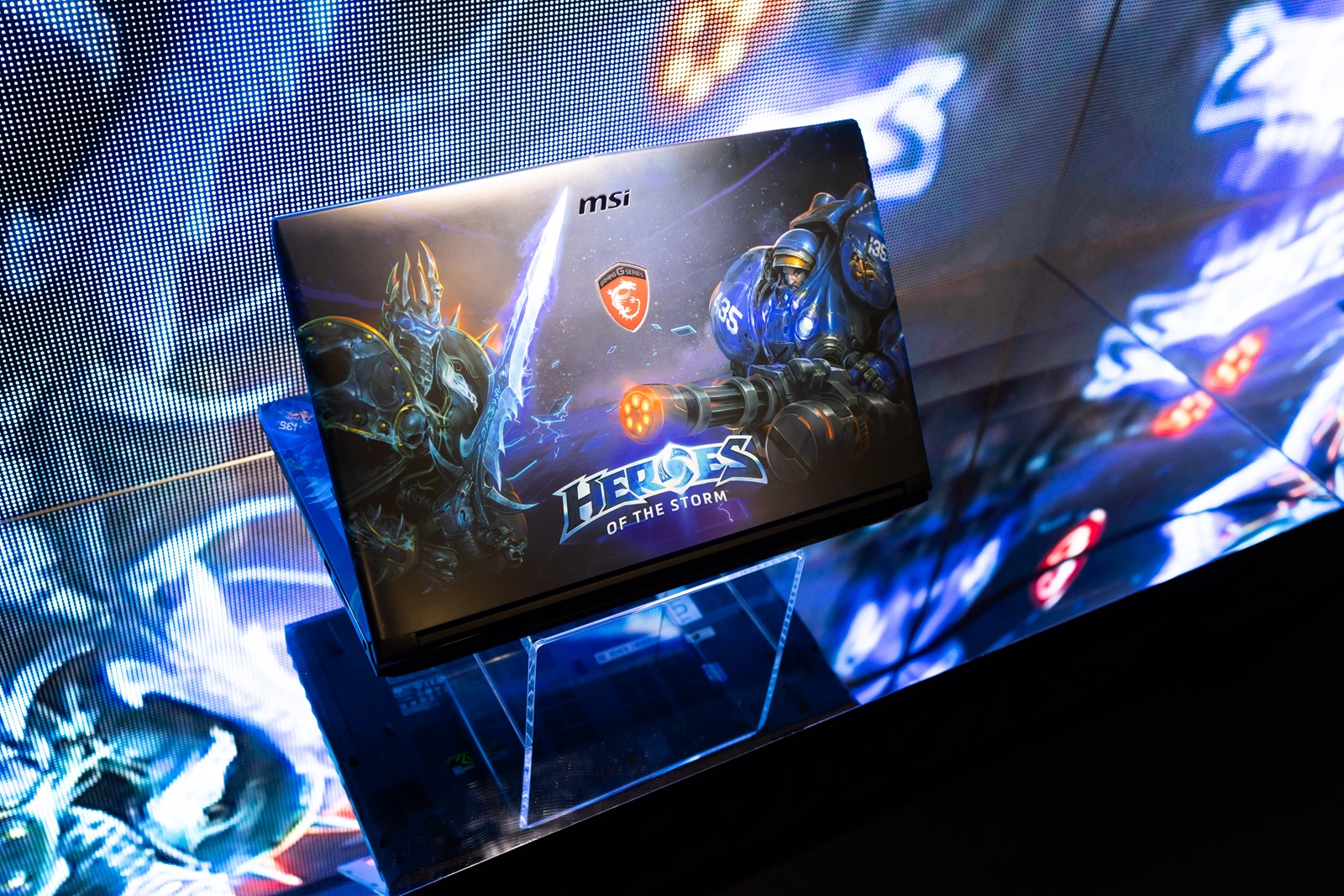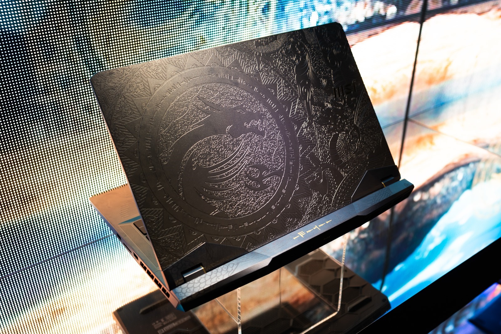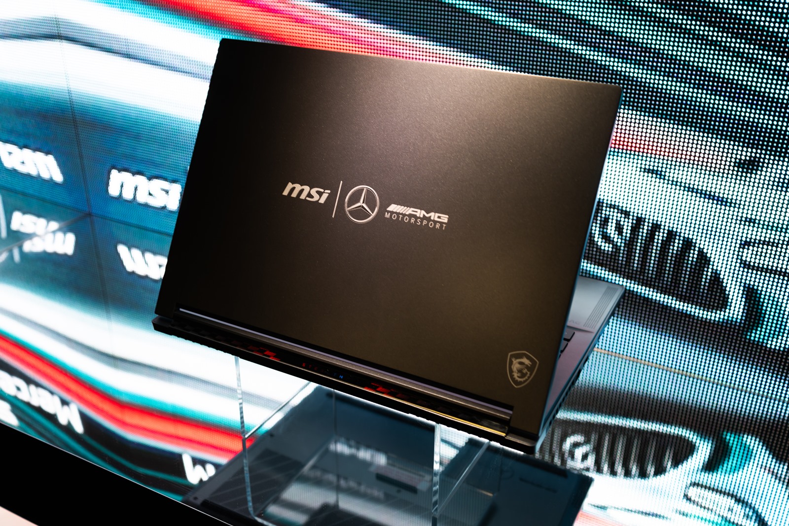 這道牆可厲害了,全都是和各種知名 IP 聯名的筆電產品,例如和暴雪/戰車世界/刺客教條合作的遊戲聯名機型,近期大家也很熟悉的賓士聯名機型等等