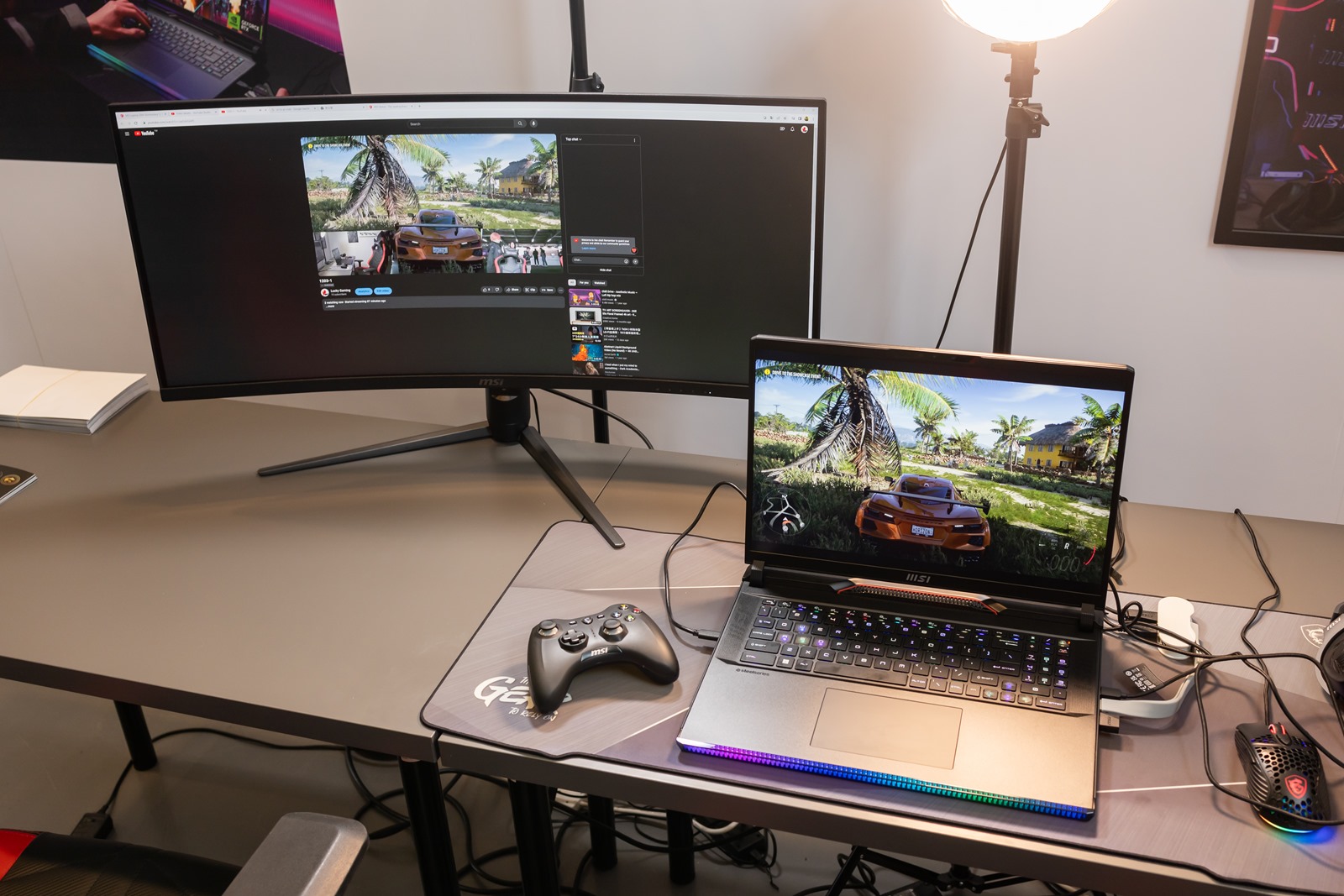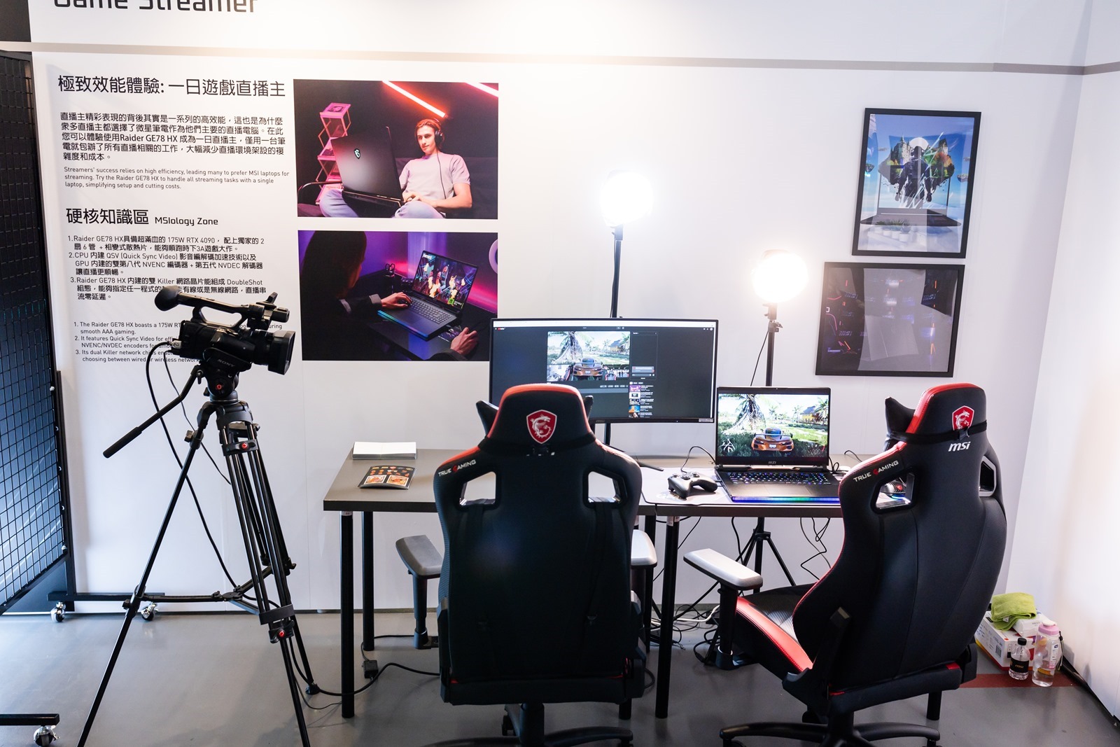 活動中也有一些是情境體驗甚至是可以親自試試看護動的區域,其中一日直播主體驗就是將微星的筆電/螢幕/遊戲配件/麥克風等產品做了一整個完整的體驗區,除了高效能筆電可以給直播帶來最好的品質與網路品質,完整的微星產品線也可以為直播主的需求打造完整產品生態。