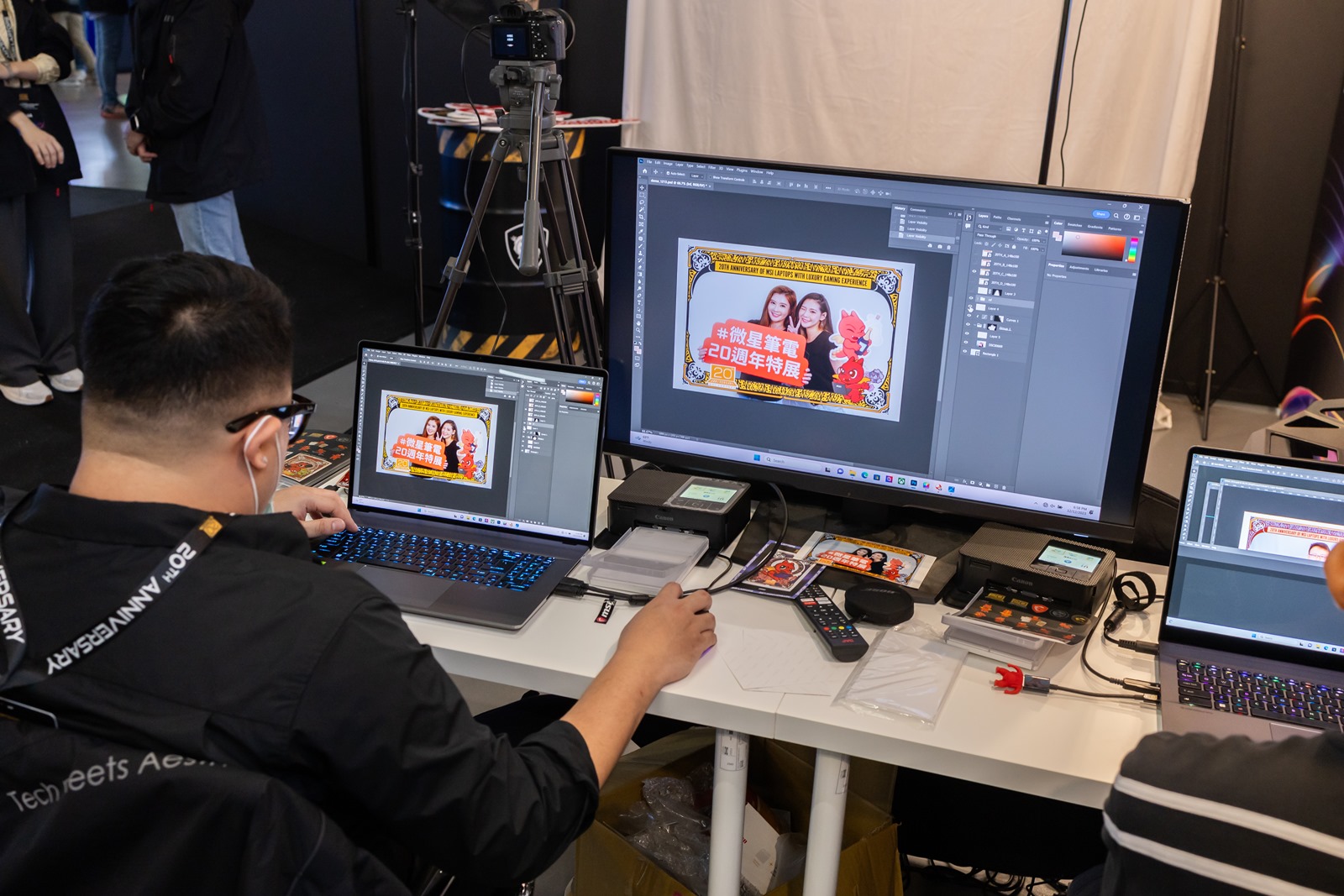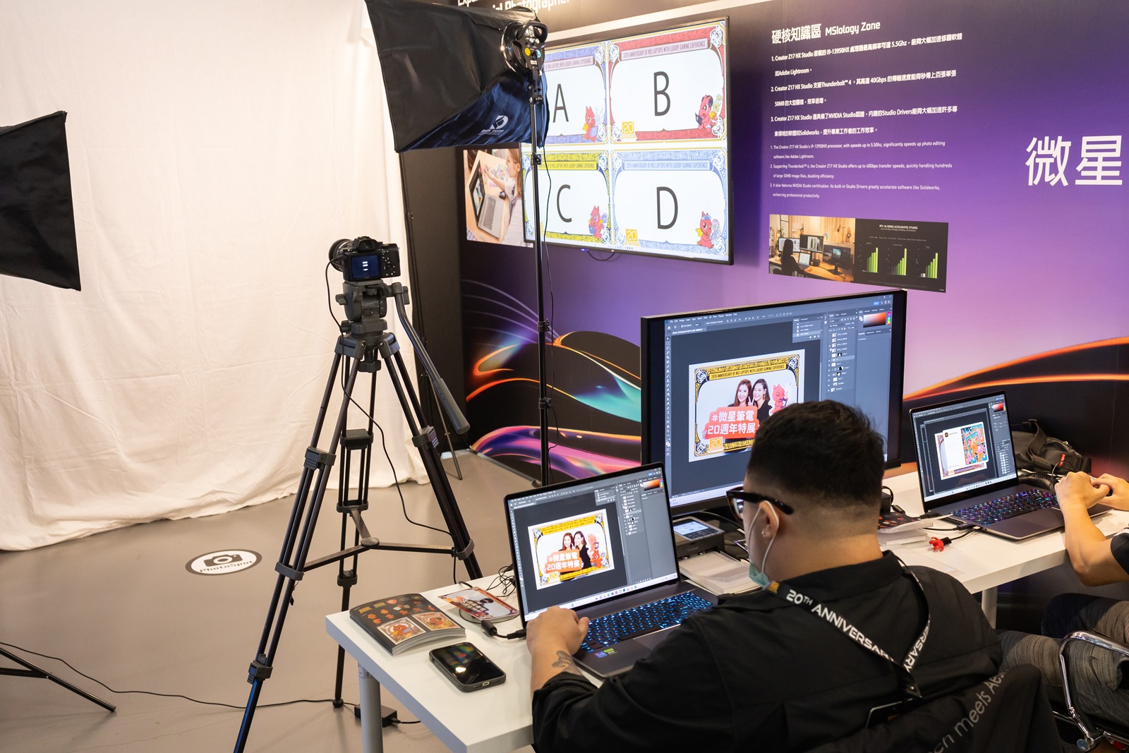 這區我就熟悉了(笑)這就是商業攝影區域,主要應該就是現場展示微星筆電強大的性能,讓爆肝的攝影師們可以走到哪裡修圖到哪裡,這一區也現場幫參觀者可以拍照然後修圖示範,不過這代表微星以後要推出攝影燈等器材嗎?(笑)