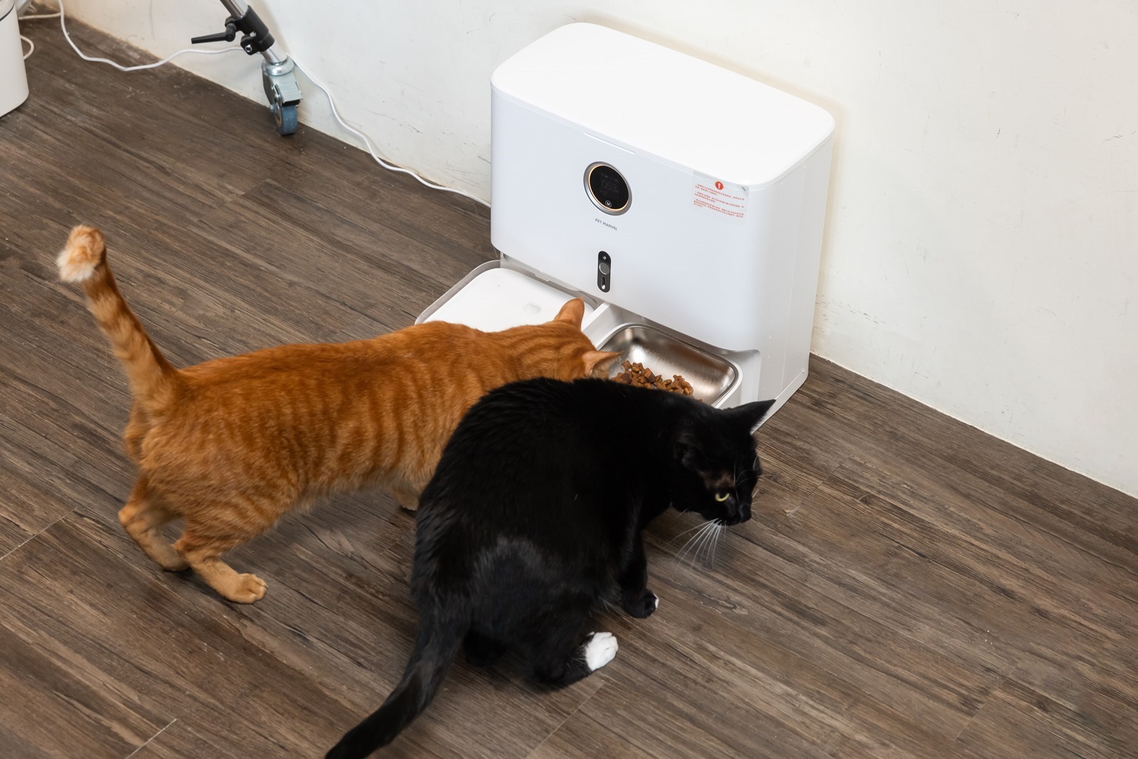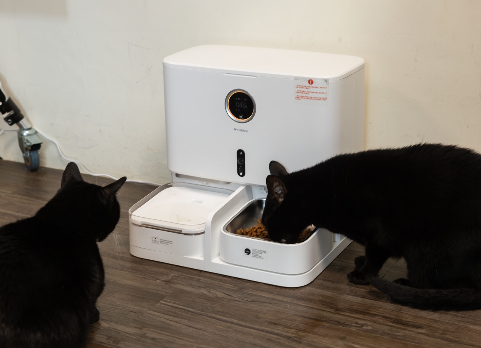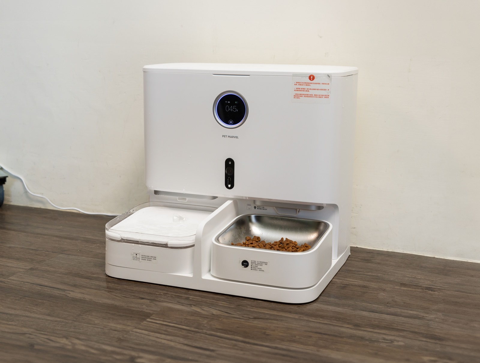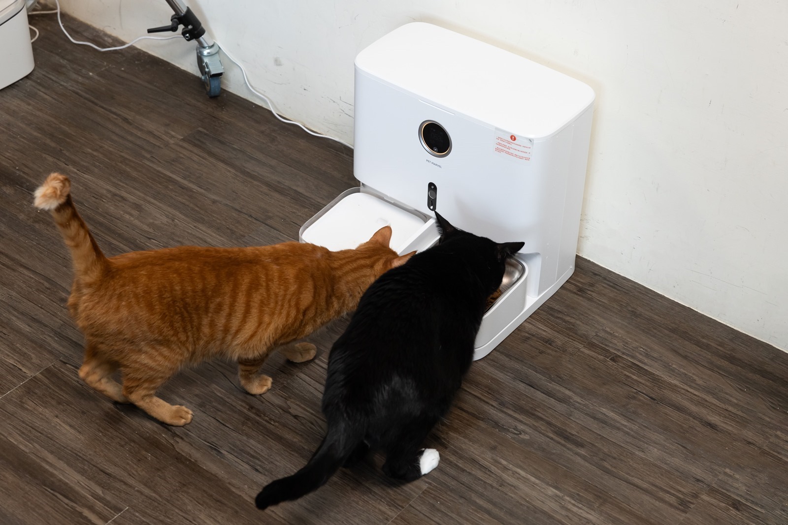 真的方便現在 Pet Marvel 寵物餵食飲水機器人一台就 = 餵食機 + 喝水器二合一,省事還省空間,本來兩台自動機器還要兩條電源,現在一台就搞定家中喵星人大小事