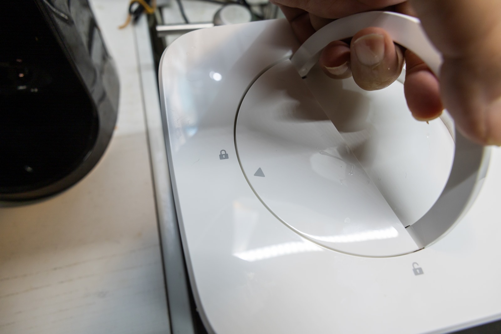如果擔心隱私問題, Pet Marvel 寵物餵食飲水機器人的鏡頭也具備實體隱私遮蓋檔板的設計,可以快速硬體直接關閉/遮蔽鏡頭