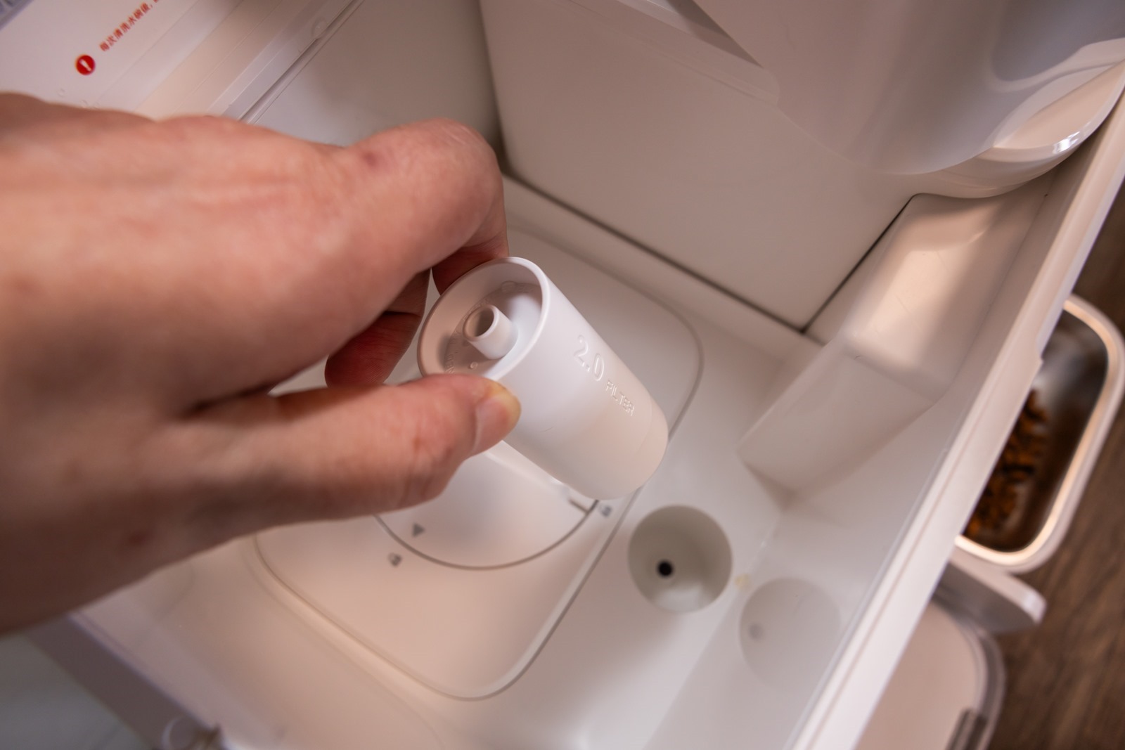 除了換水功能之外當然一般最常見的濾心過濾一樣沒缺席, Pet Marvel 寵物餵食飲水機器人採用三道過濾濾芯設計,簡單安裝就可以保證提供給寶貝寵物喝的水質
