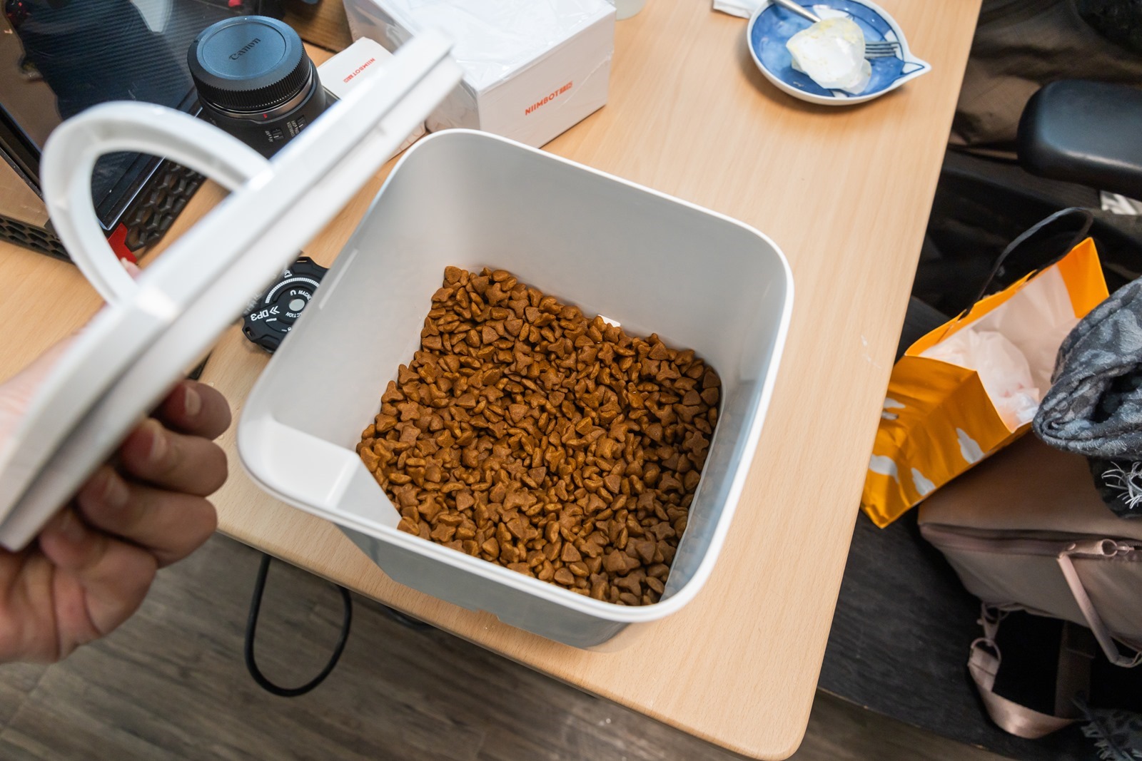 說真的 Pet Marvel 寵物餵食飲水機器 外型真有點像是這幾年阿輝也是重點關注的掃地機器人基站(大笑),不過的確 Pet Marvel 寵物餵食飲水機器人不僅僅是自動餵食機 + 自動飲水機而已,的確不愧對於他叫做『機器人』的自信