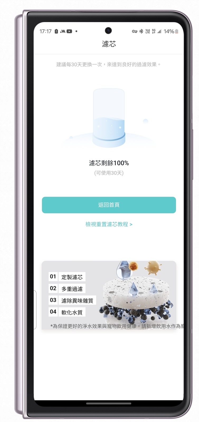 APP 中也會提醒濾心使用更換情況