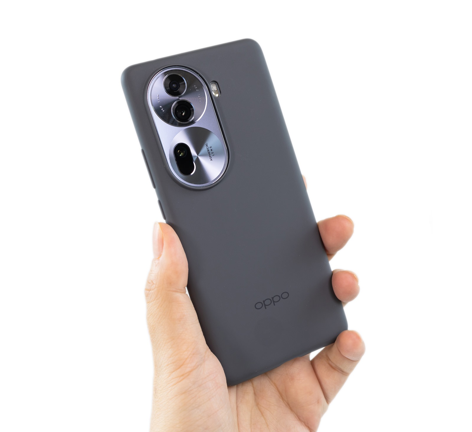 Reno11 Pro 兩種顏色都是採用強化玻璃機身材質,表面都採用了不容易沾染指紋的處理,岩石灰表面像是岩石細磨砂質感,珍珠白則像是貝殼珍珠的紋理