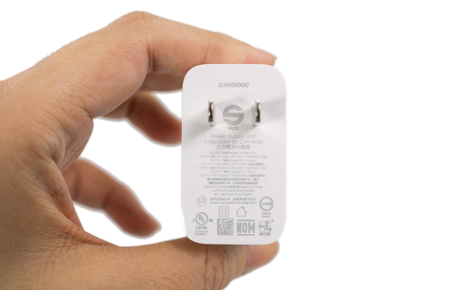 Reno11 Pro 支援 80W SUPERVOOCTM 快速充電,比較有趣的是台灣上市的國際版其實附的是 100W 充電器,這樣在台灣 110V 電壓下就可以使用 80W 快速充電沒有問題