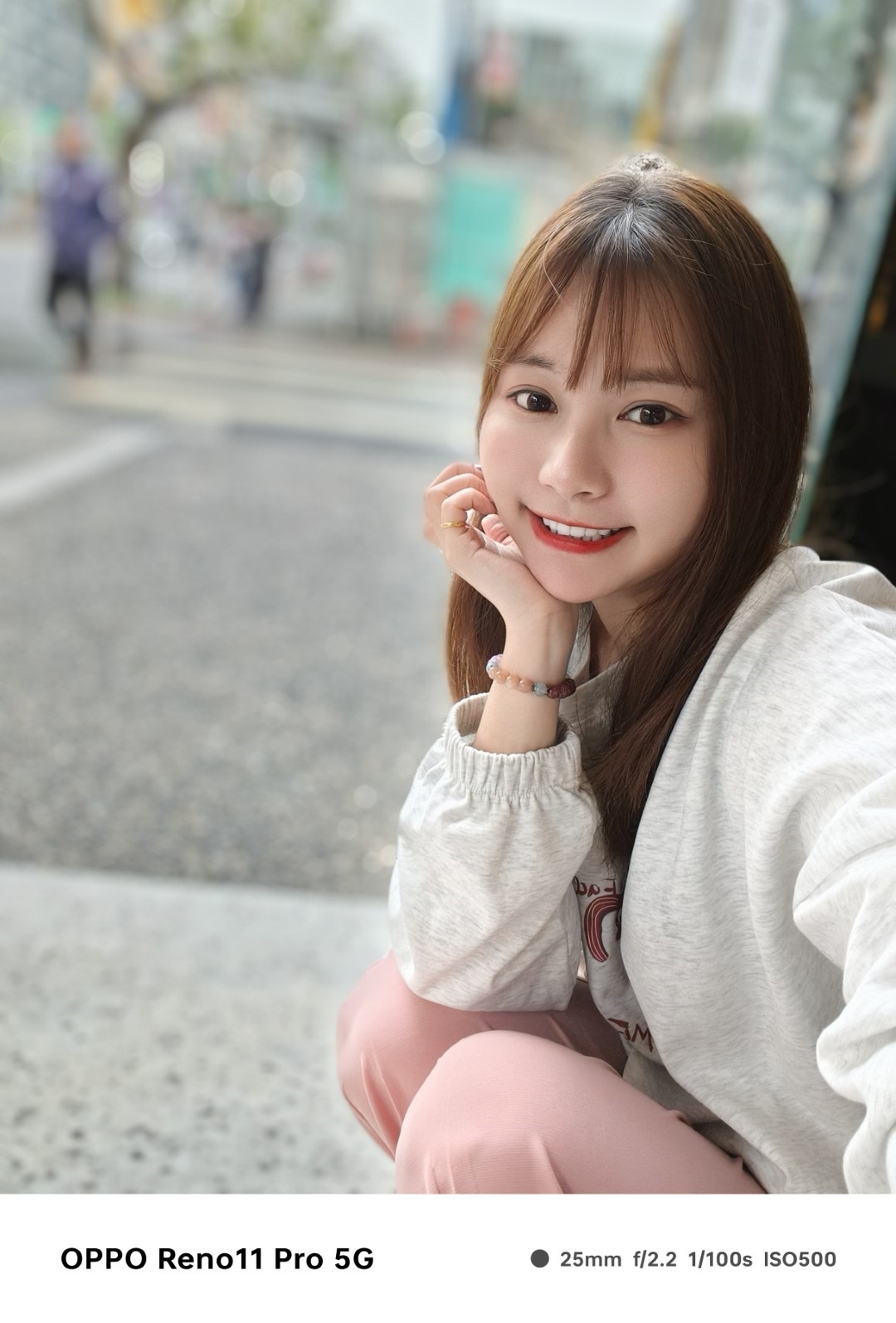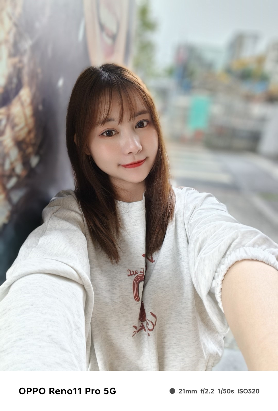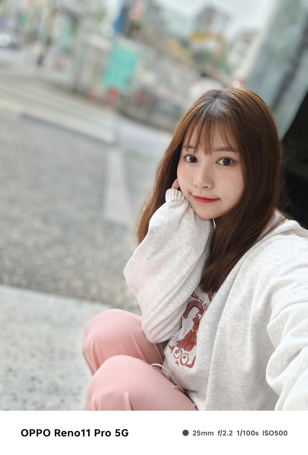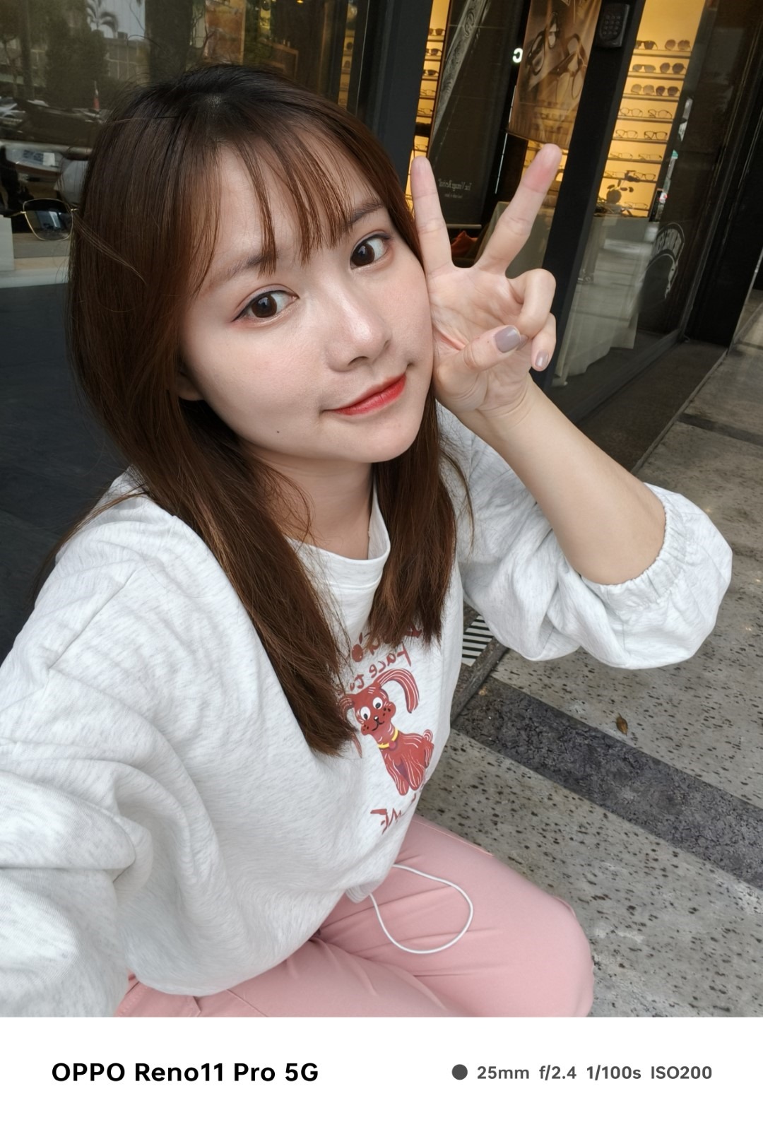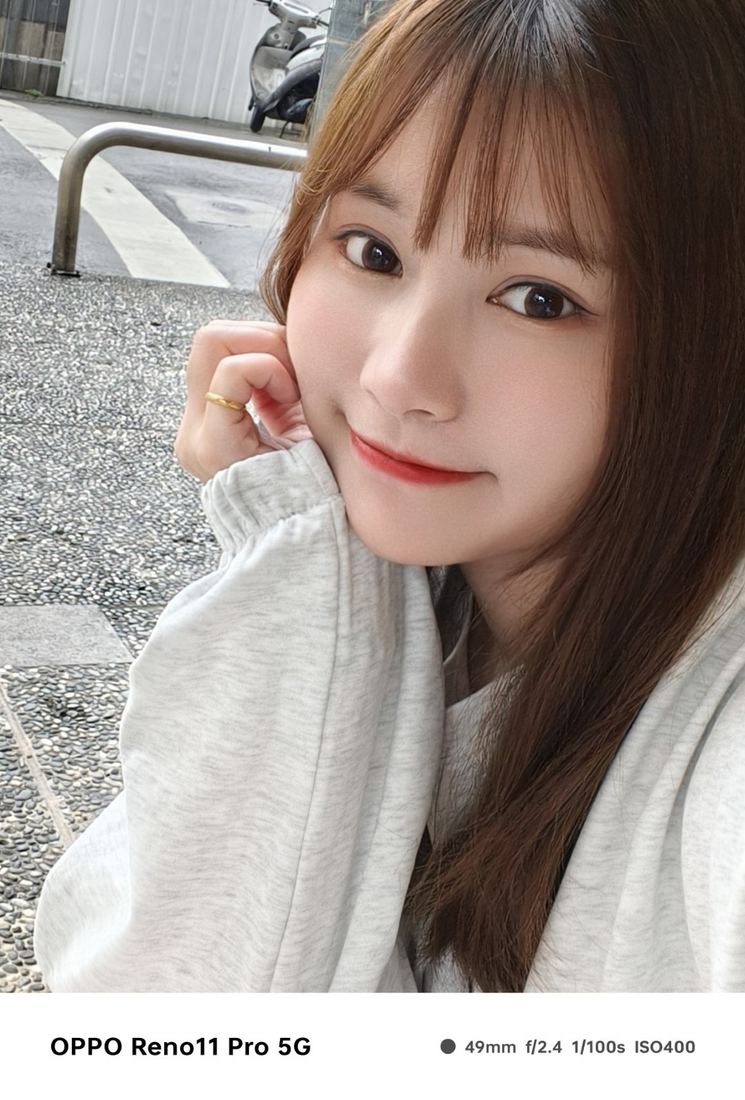 自拍 OPPO 當然就是讚!OPPO Reno11 Pro 與 OPPO Reno11 自拍方面都是用 3200 萬像素 f/2.4 光圈並,且 Reno11 Pro 還支援 AF 自動對焦,這裡也請合作妹子自拍給大家參考。