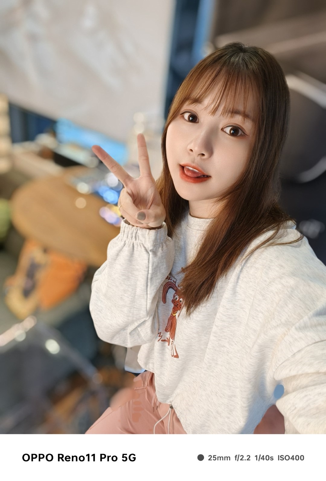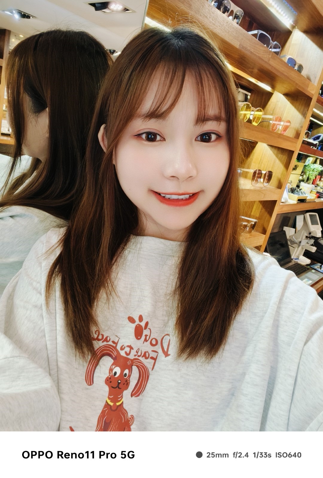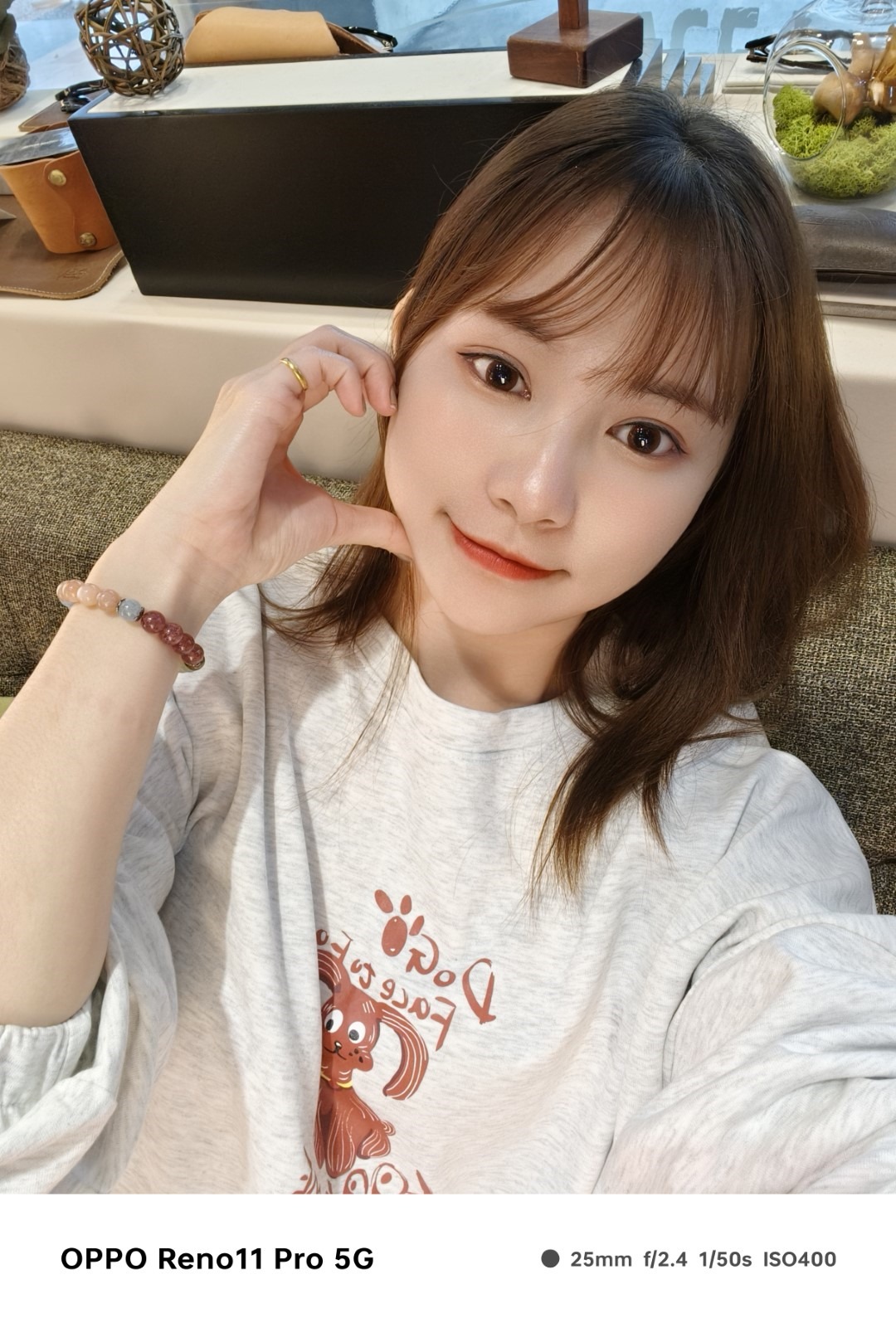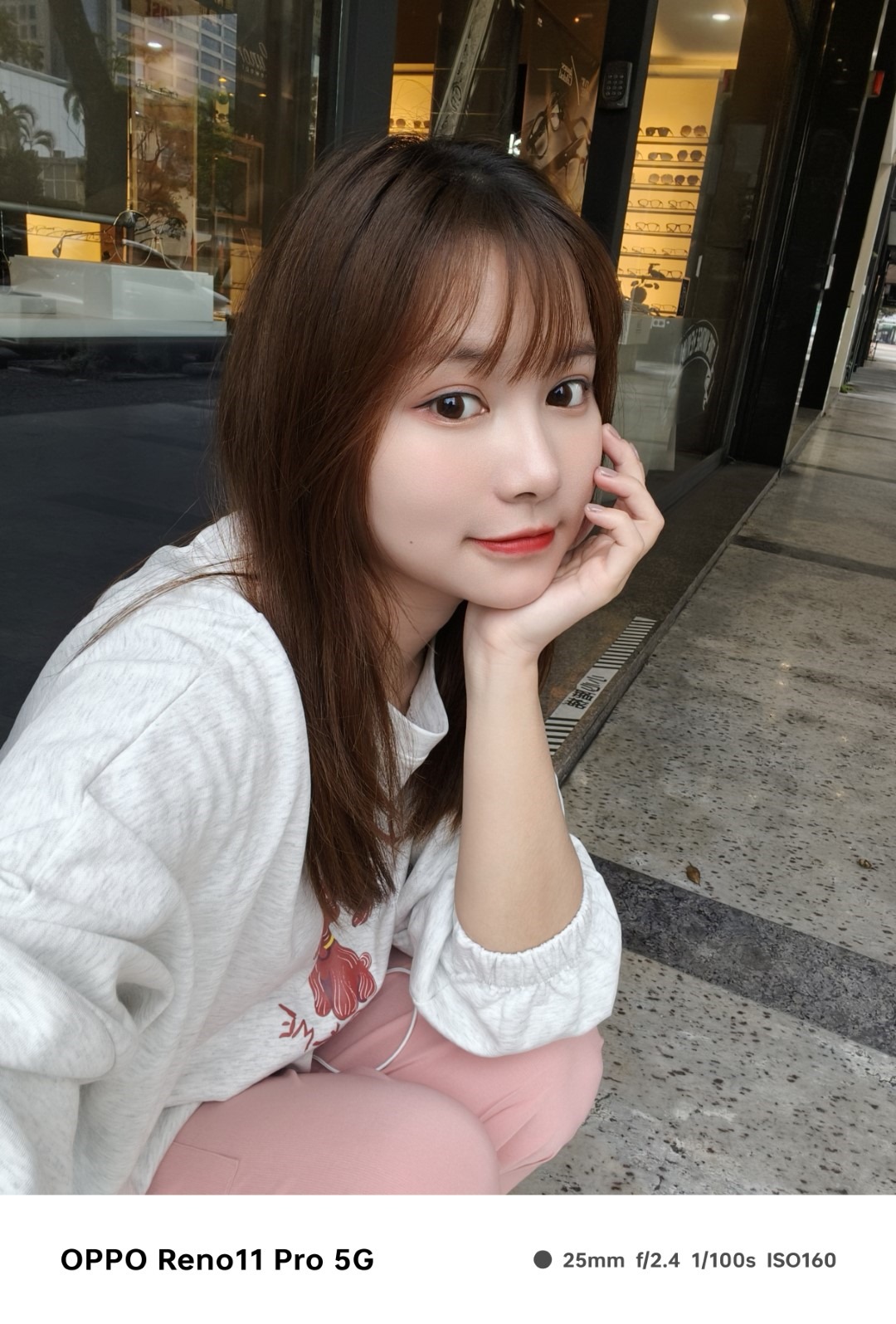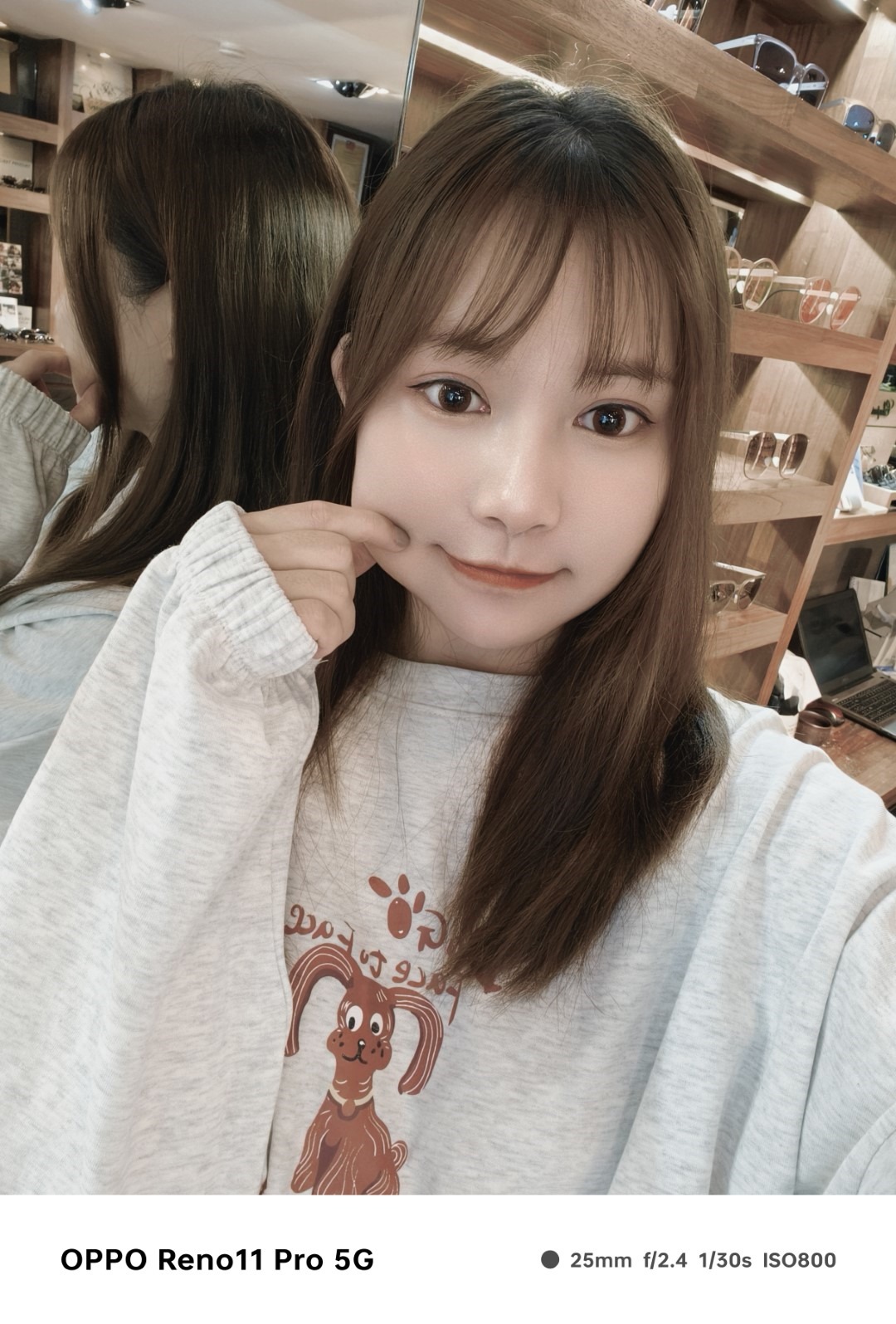 自拍 OPPO 當然就是讚!OPPO Reno11 Pro 與 OPPO Reno11 自拍方面都是用 3200 萬像素 f/2.4 光圈並,且 Reno11 Pro 還支援 AF 自動對焦,這裡也請合作妹子自拍給大家參考。