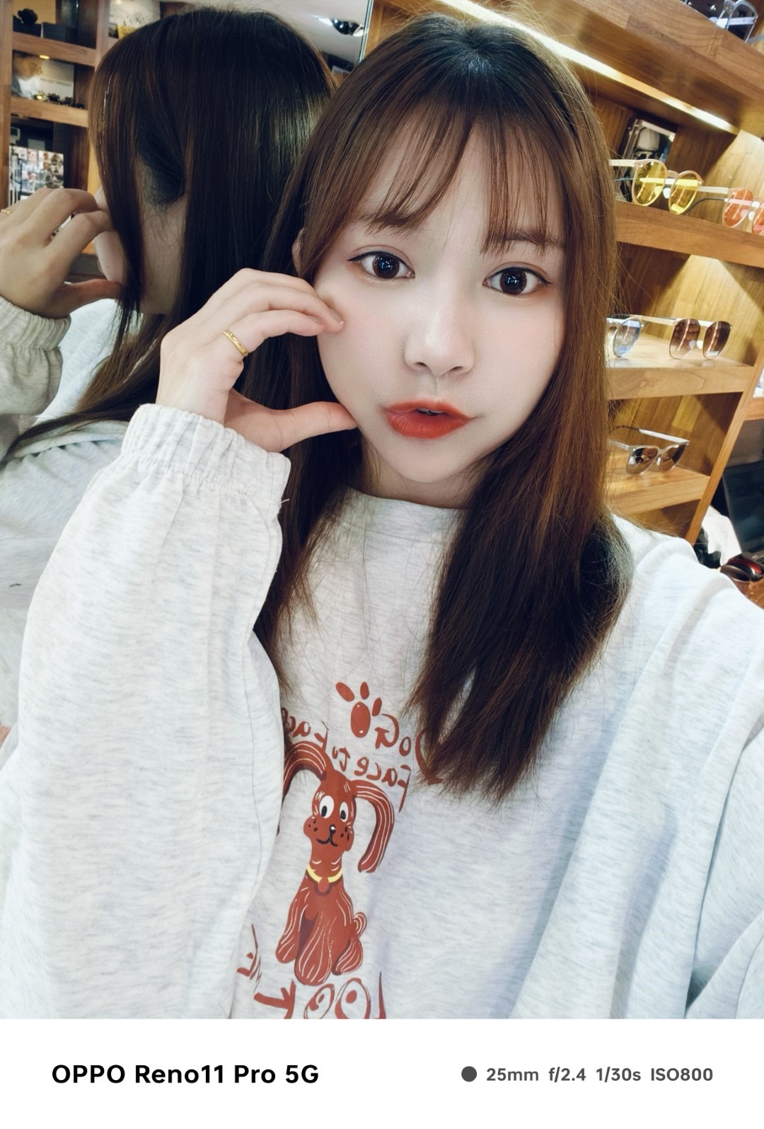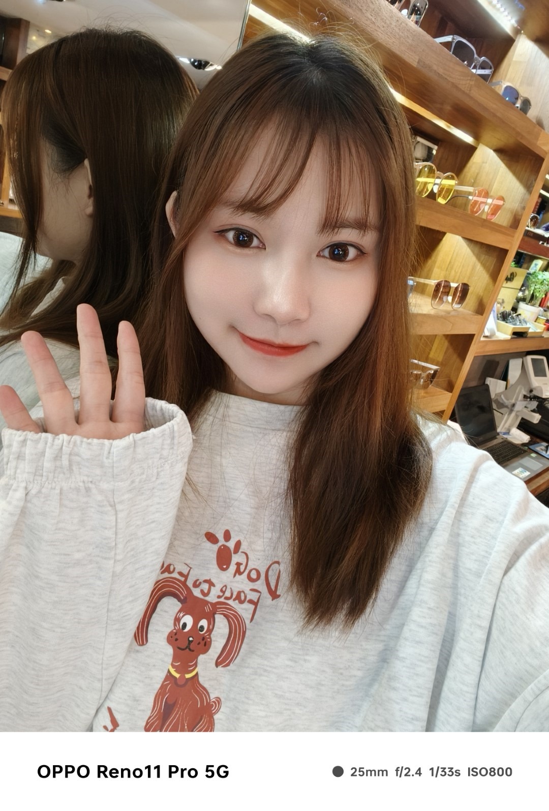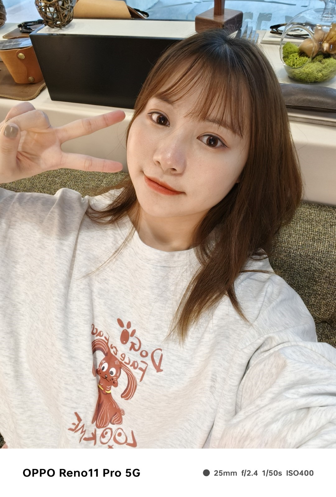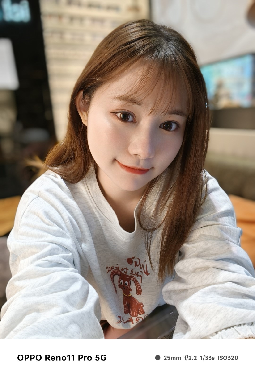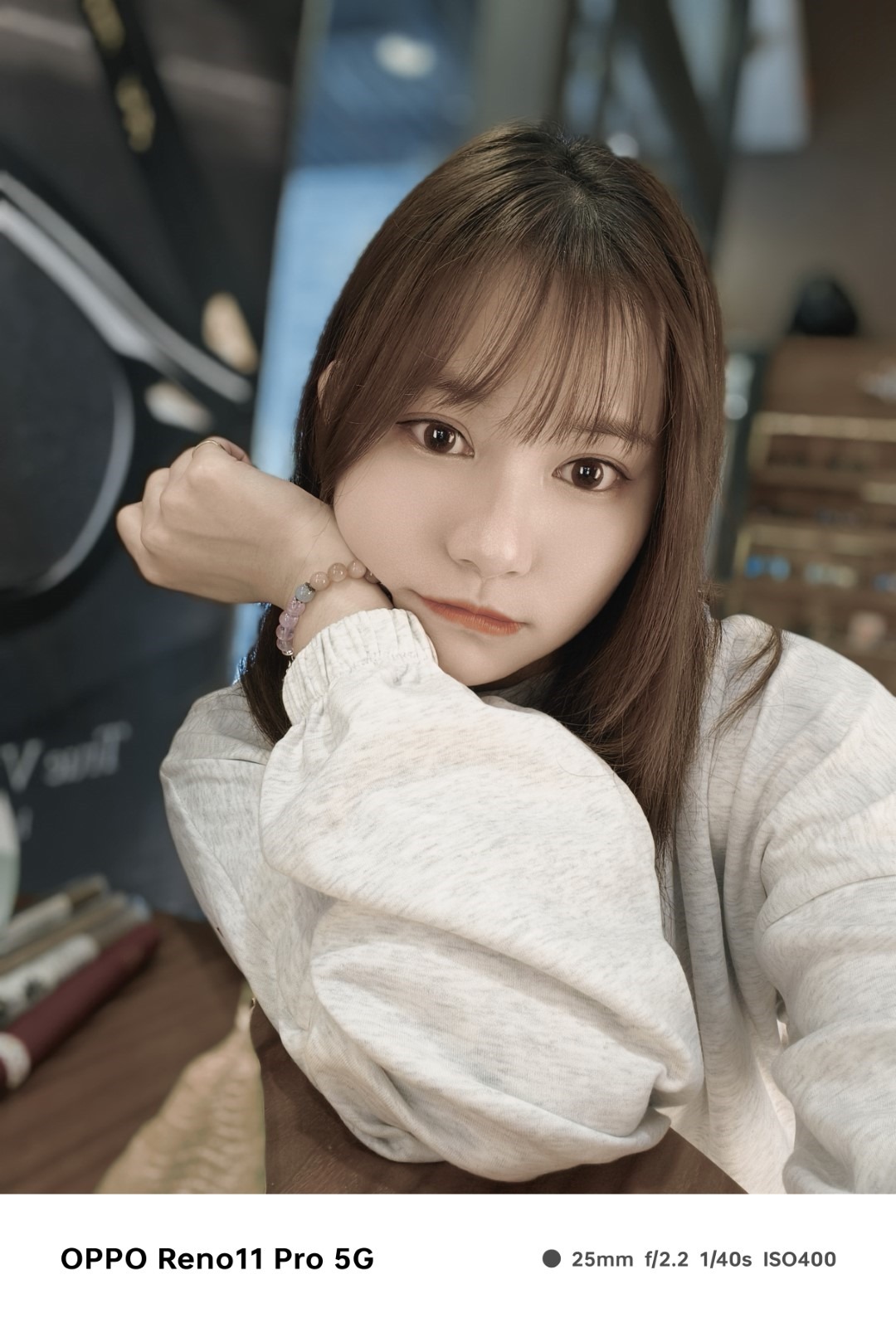 自拍 OPPO 當然就是讚!OPPO Reno11 Pro 與 OPPO Reno11 自拍方面都是用 3200 萬像素 f/2.4 光圈並,且 Reno11 Pro 還支援 AF 自動對焦,這裡也請合作妹子自拍給大家參考。